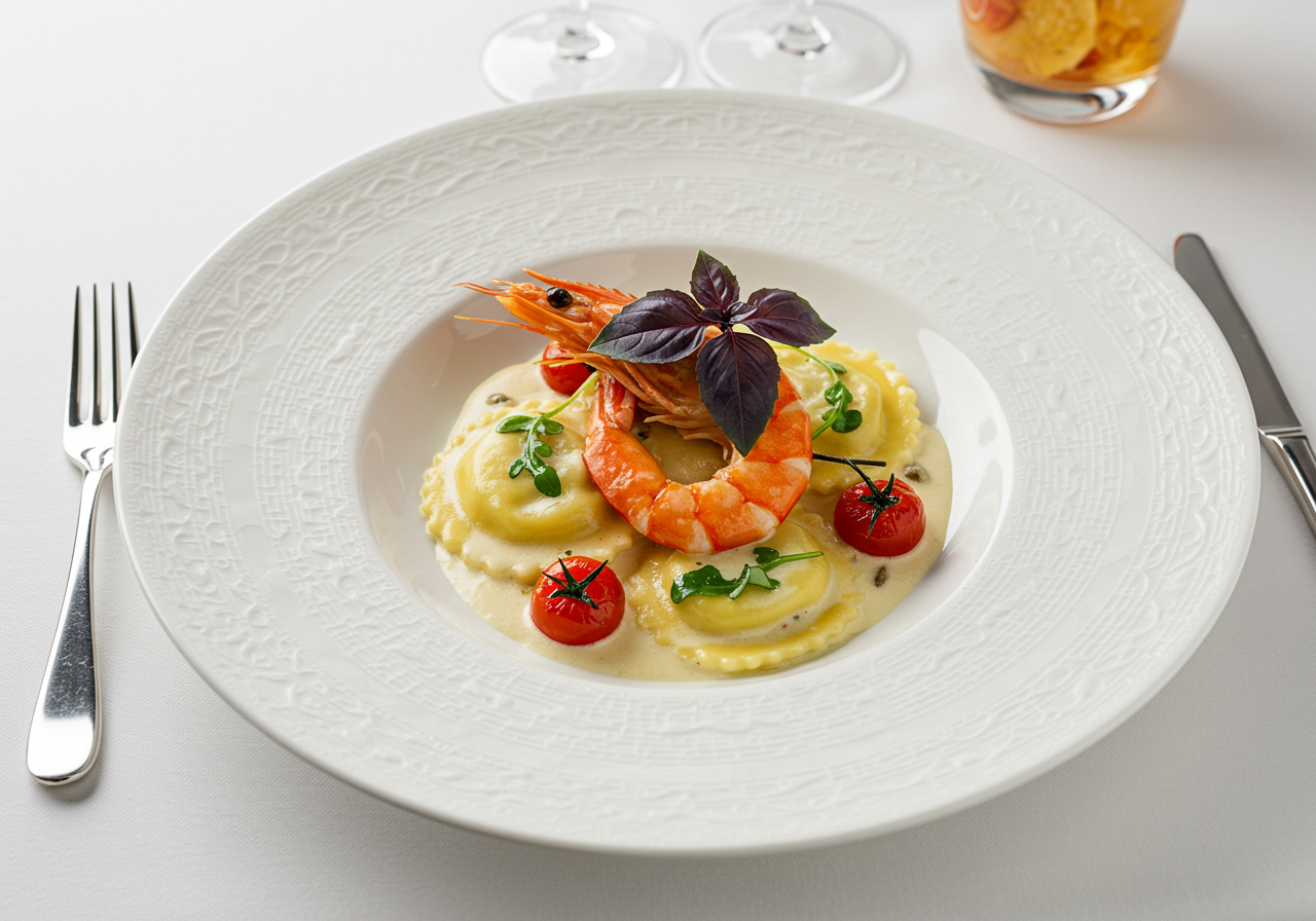 The main dishes are just as diverse in scope and design. Indulge in the Atlantic lobster ravioli. This creamy and savory dish also features spicy sambuca prawns to cut through the cream sauce. The duck confit is a complexly delicious dish. A crispy leg is served alongside a sauce charcuterie, buttery potatoes, fragrant roasted onion puree, and Italian fennel sausage.