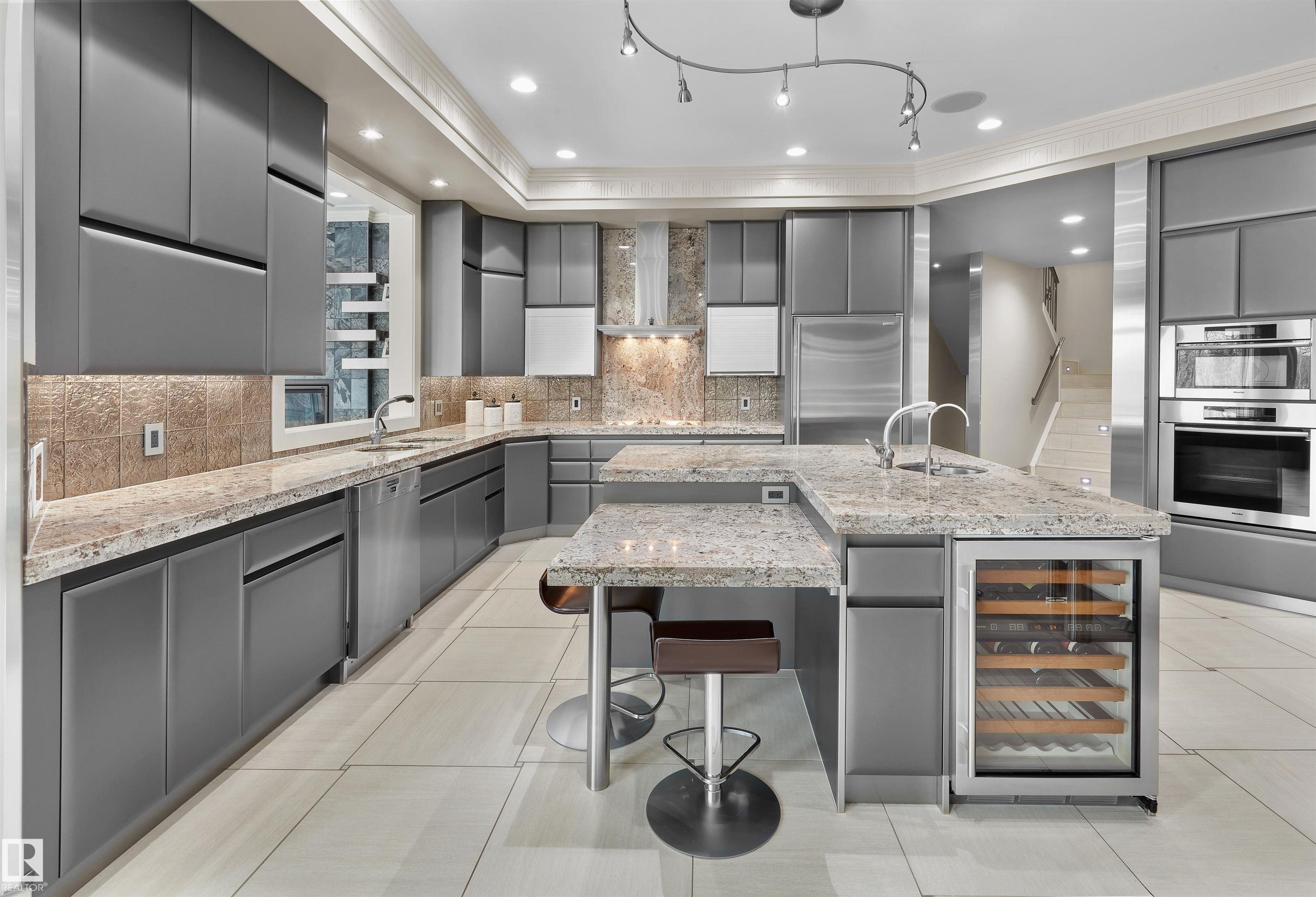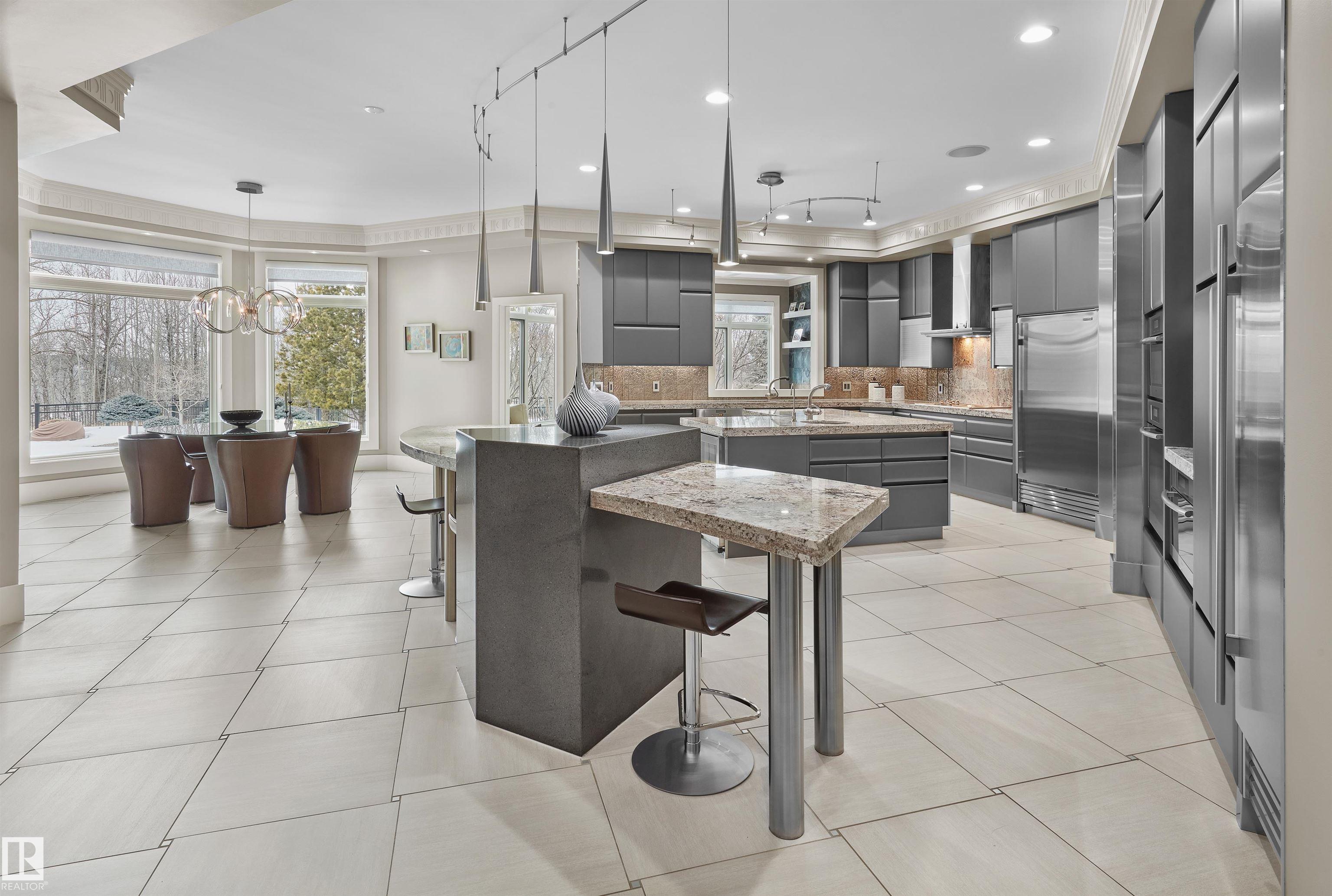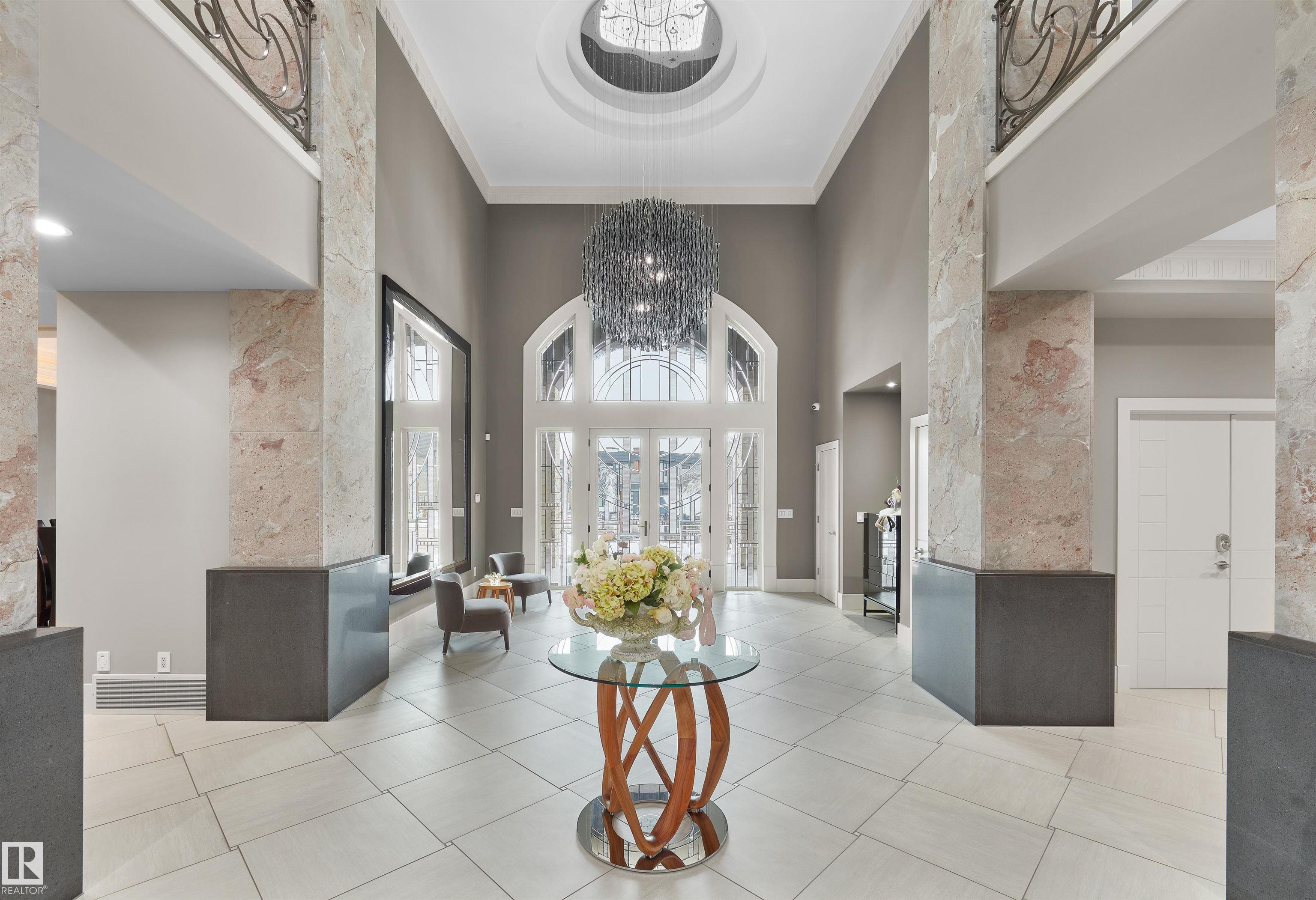 Your best life begins with a home that inspires you. Edmonton's Magnum Opus , A Heredity Homes Masterpiece. Luxury and Opulence is the superlative portrayal. Grande entry by McMow Art Glass- Florida, Granite Imported from Portugal, German REDL cabinetry, DURAVET, HANSGROHE and blown glass bathroom fixtures, Slavo Cech metal railings, OXIDIZED copper wall feature, Art designed sushi bar, Wenge HWD from the Congo in Africa, IMPORTED Italian glass tile, CHANDELIERS Imported from renowned Artists. TOP GRADE kitchen paraphernalia - Miele/SubZero, exterior METAL fence and private gate designed and shipped from Poland to accent the lush gardens - total landscaping investment of $1M DOLLARS incl 4 fire features. 2 THEATRES, sports memorabilia room, ELEVATOR, EXTRAVAGANT outdoor living space w/ heaters, roll shutters and screens. PKG for 6 cars. 5 A/C units, RADIANT heat, 6 gas fireplaces, Fully integrated home automation, 8 bathrooms, fully self contained nanny suite. Truly a Majestic Jewel.