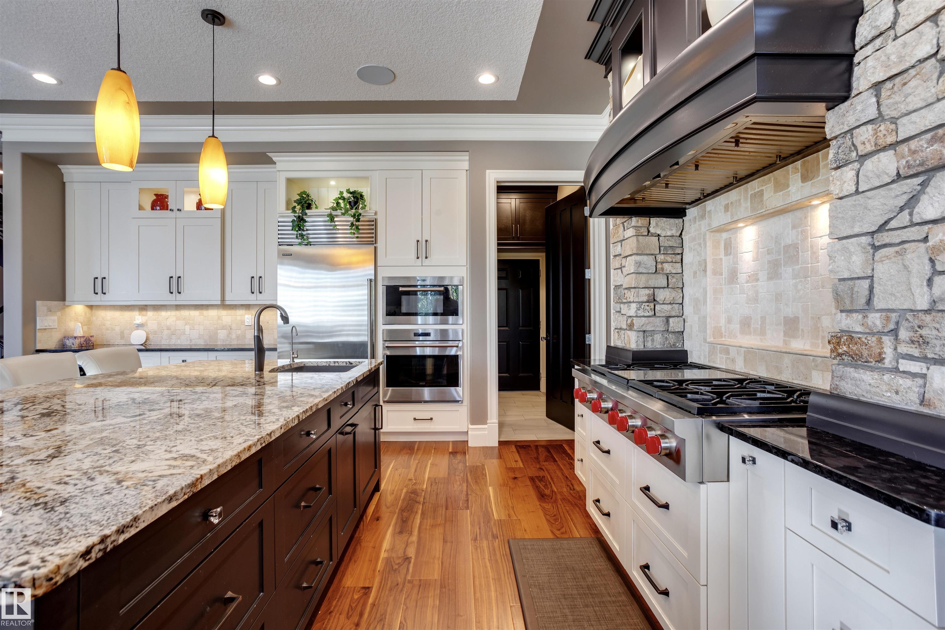 In the heart of Windermere, this residence embodies refined living with an effortless sense of style. The soaring twenty-foot foyer sets a dramatic tone, opening into sunlit spaces where sophistication meets comfort. At the home's center, a chef's kitchen with Wolf and Sub-Zero appliances, a generous island, and a discreet butler's pantry offers seamless functionality for daily life and entertaining. The dining area flows to a peaceful deck overlooking a private backyard, extending the home's sense of calm. The primary suite is a private retreat with a chic spa-level bath, separate laundry, and a tailored walk-in closet. A main-floor office enhances convenience, while upstairs hosts three additional bedrooms, a family room, and two elegantly appointed baths. The finished lower level is a world of its own with heated floors, a fitness studio, home theatre, and a legal two-bedroom suite. A home where elevated design and lifestyle converge in perfect balance.