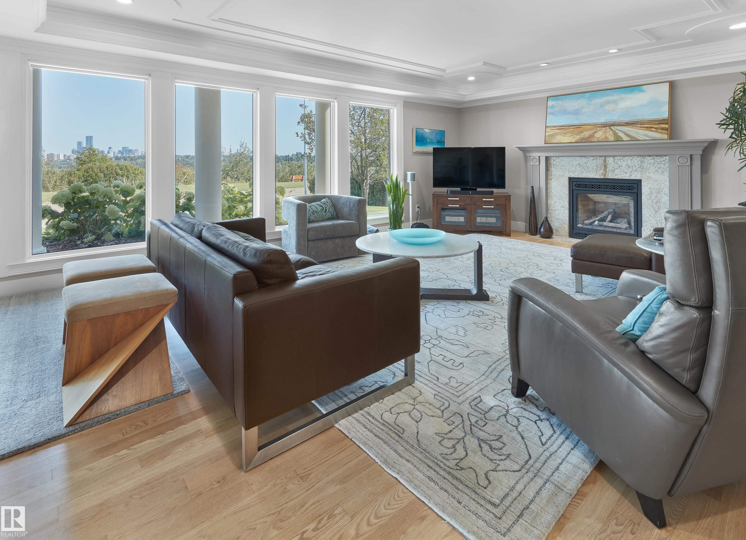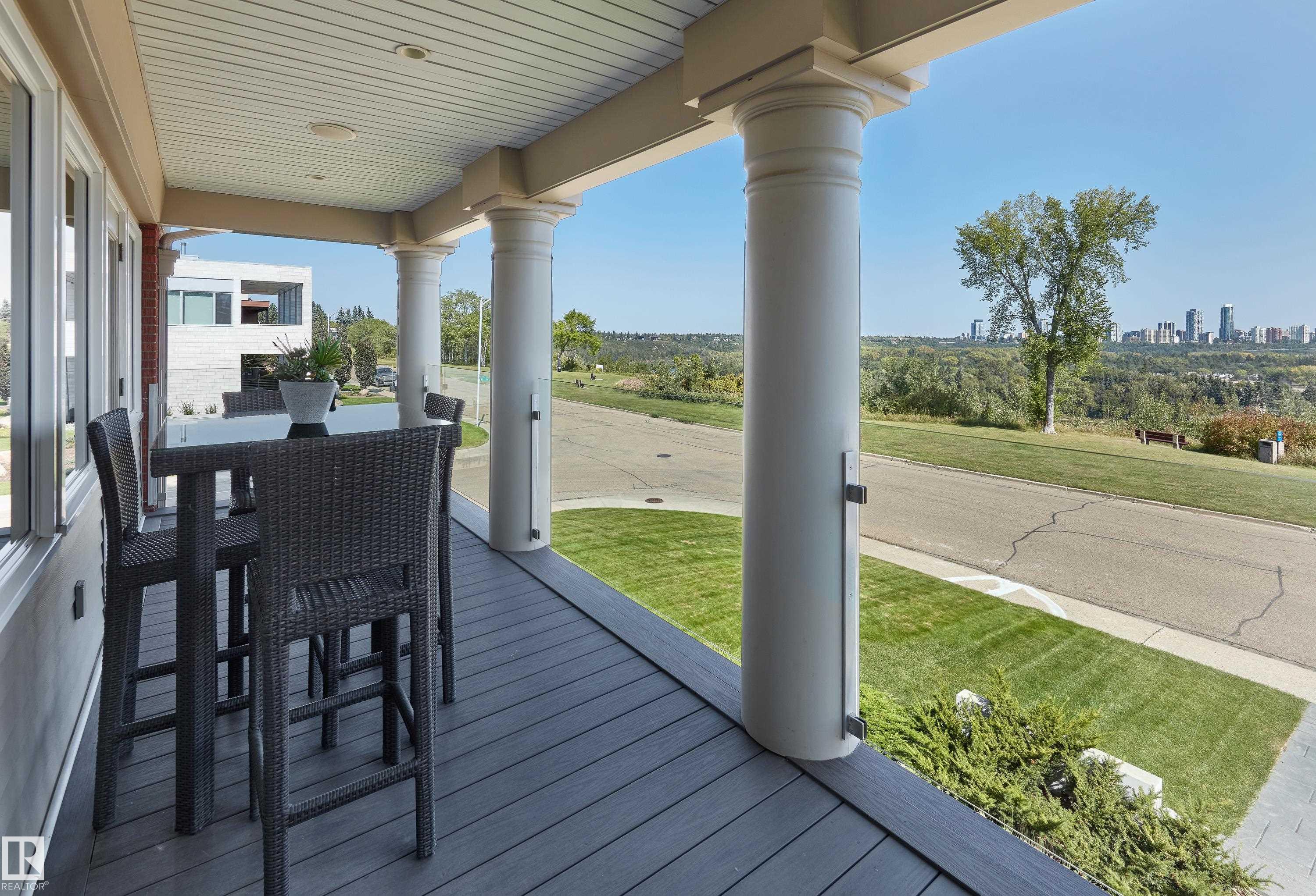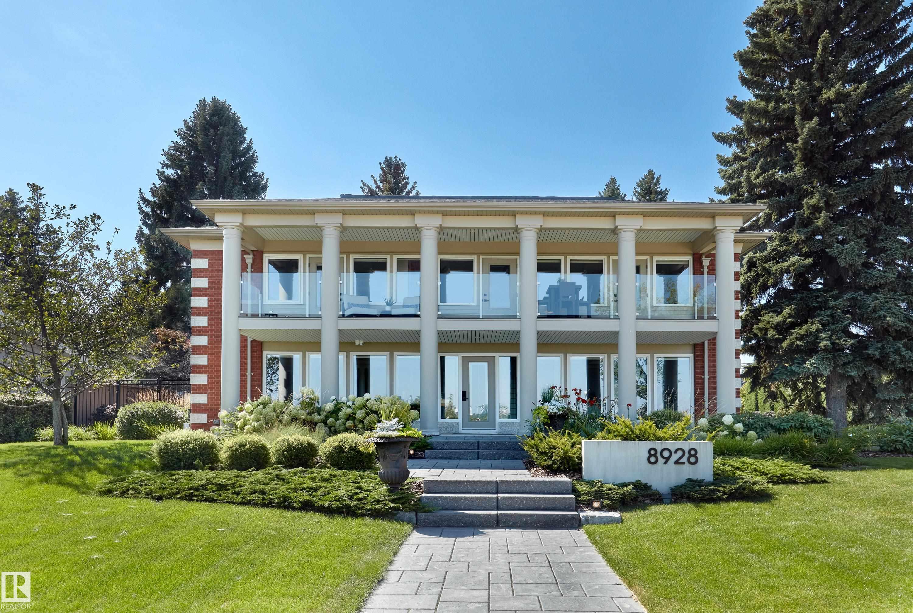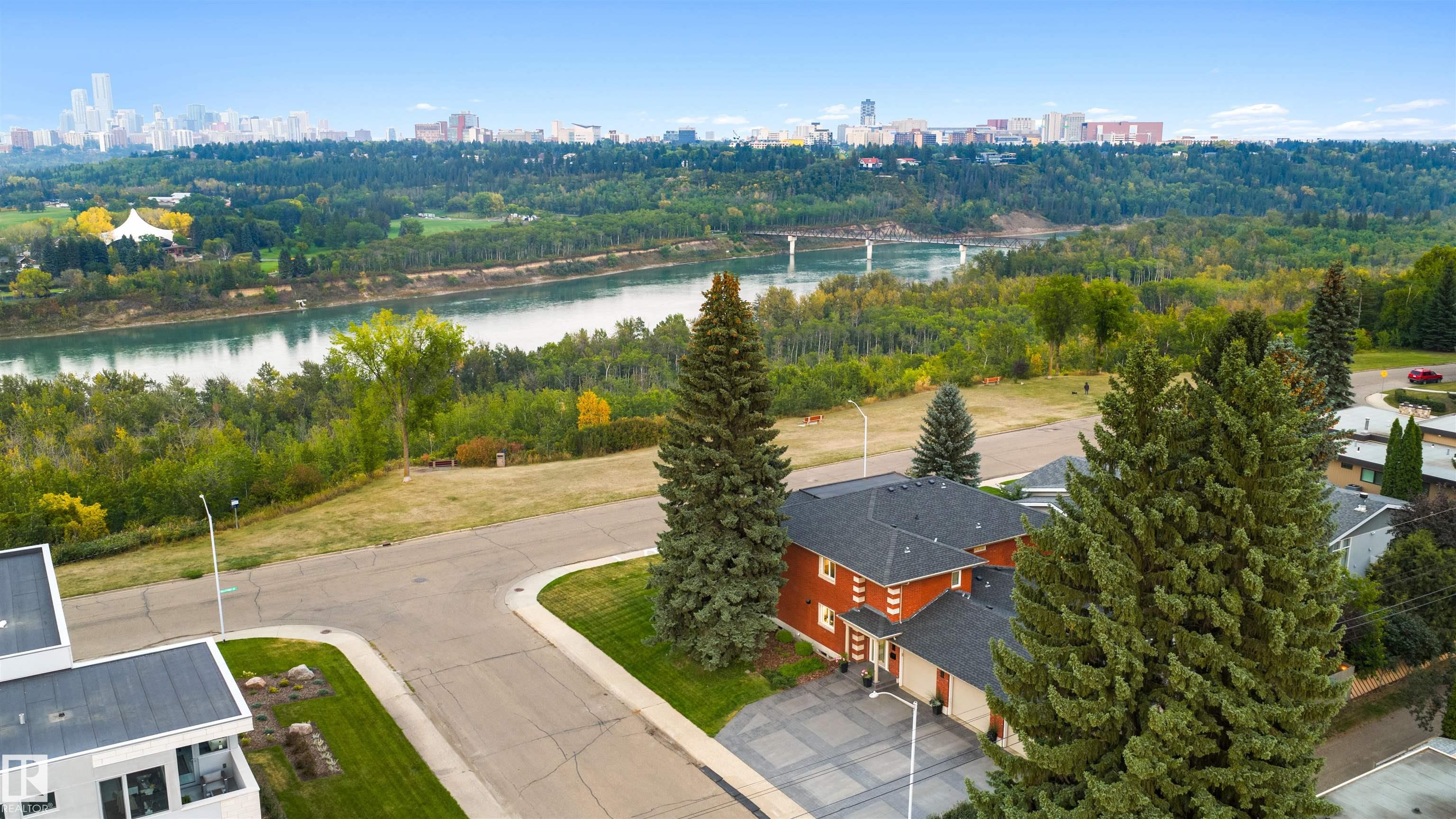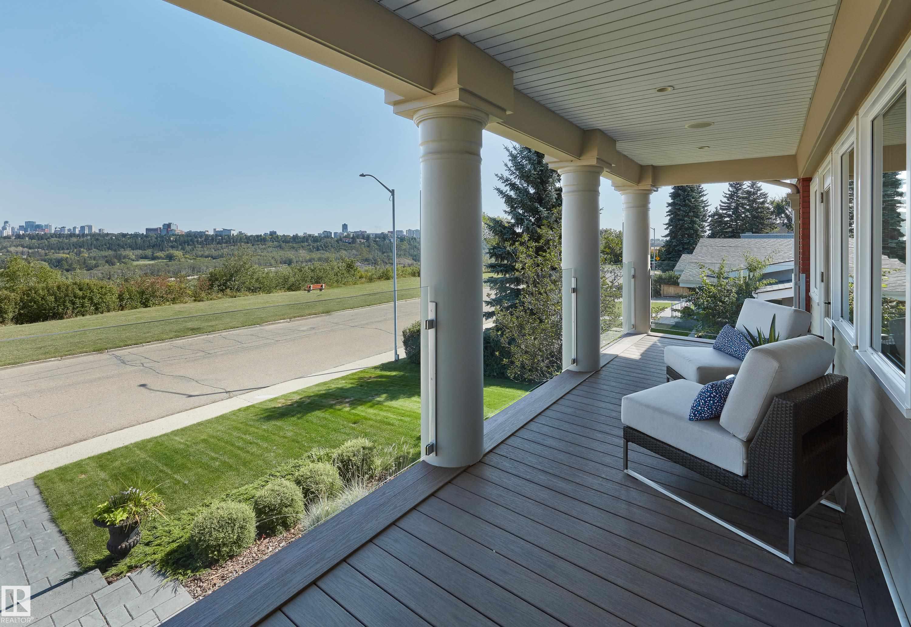 Commanding one of the most breathtaking vantage points in Edmonton, this Georgian-inspired estate offers uninterrupted views of the river valley and iconic downtown skyline. Fully reimagined in 2000 by Rescom Construction, renowned architects, and master craftsmen, the home blends timeless architecture with enduring quality. Expansive windows flood the interior with natural light, while a second-floor patio with invisible glass rails invites you to take in breathtaking vistas. Inside, elegant stone surfaces, bespoke detailing, and a gas fireplace define spaces designed for both grand entertaining and intimate moments. The private backyard provides a rare retreat, balanced by the convenience of a triple-car garage. A home of this caliber is not simply a residence, it is a statement of legacy, offering the discerning buyer an unparalleled lifestyle.