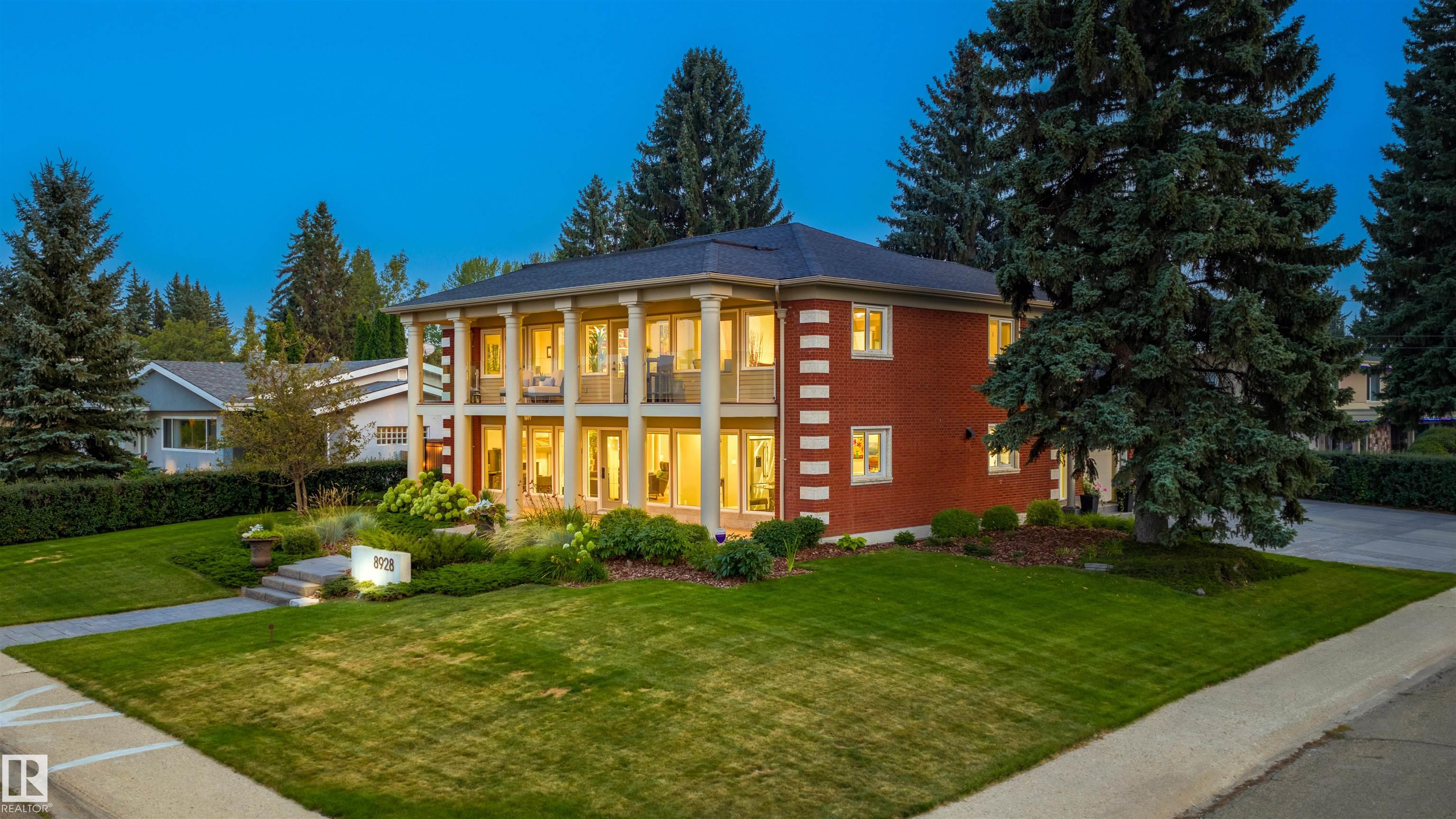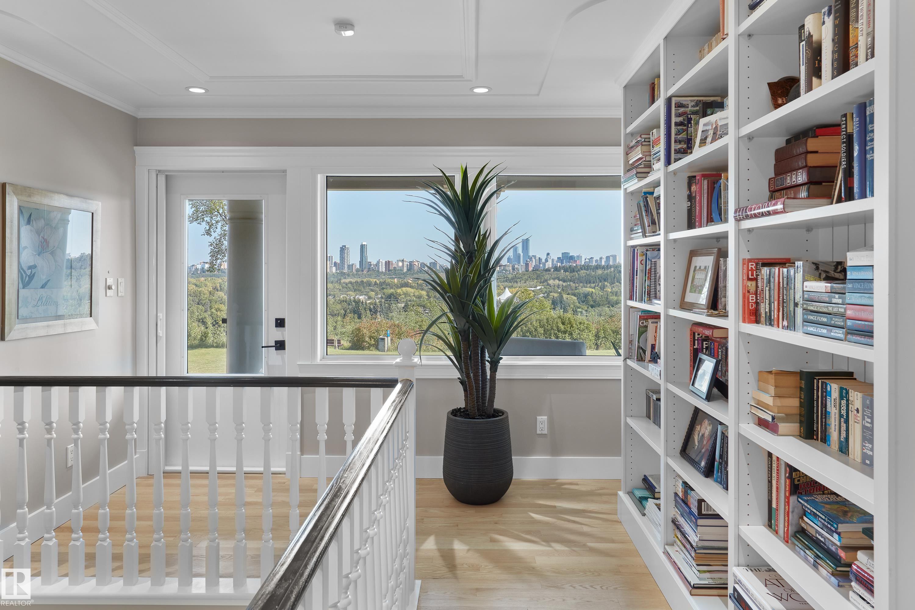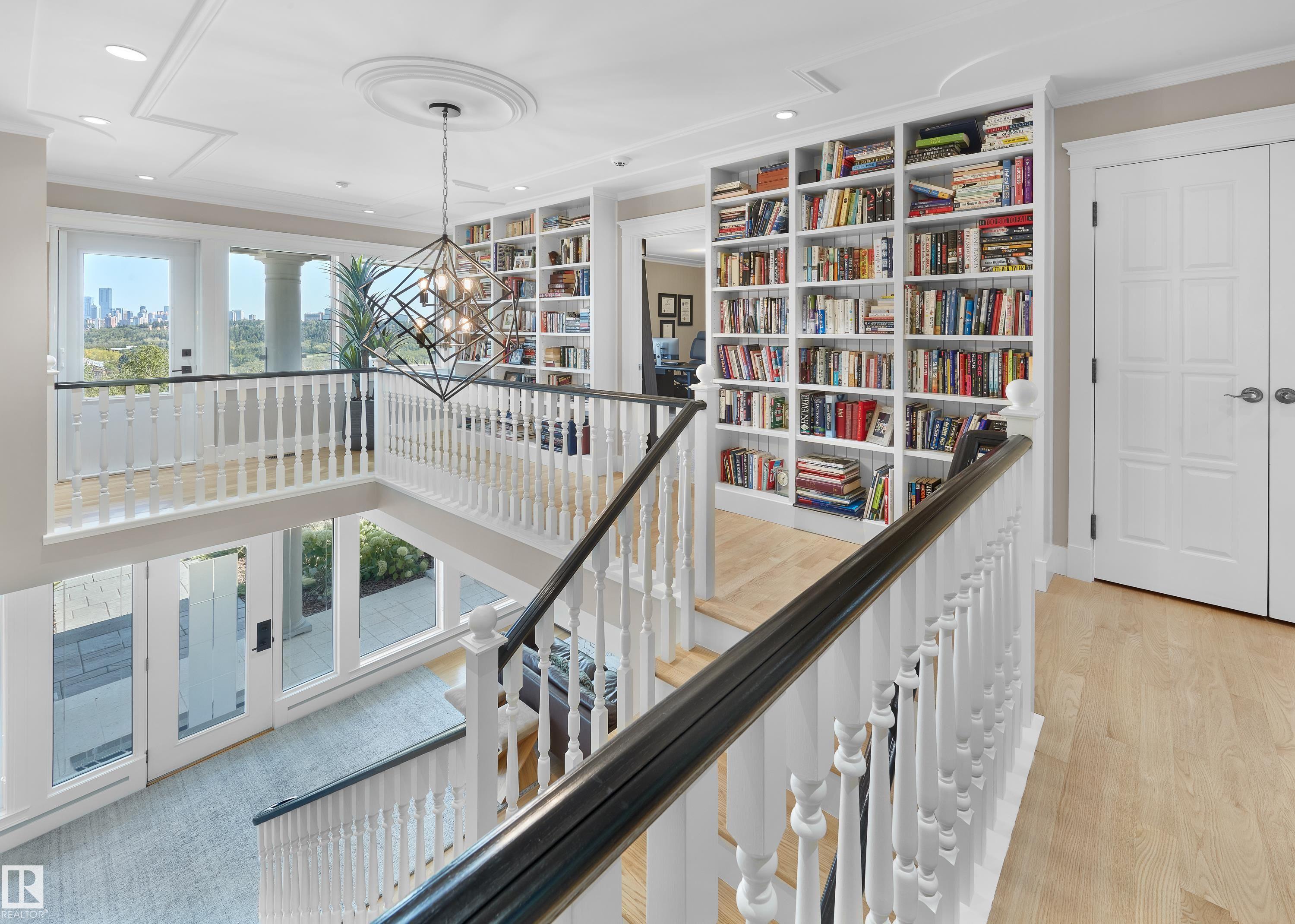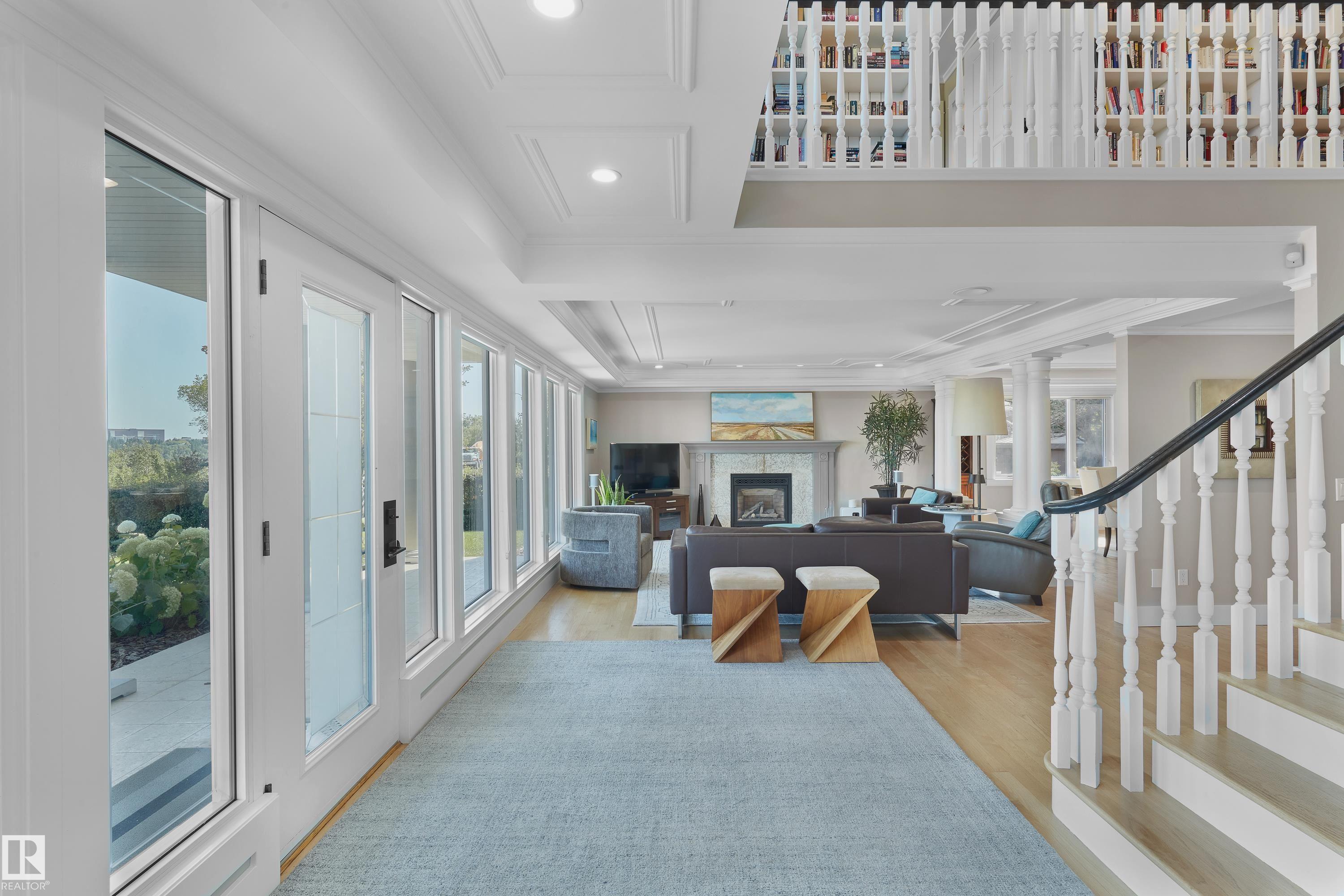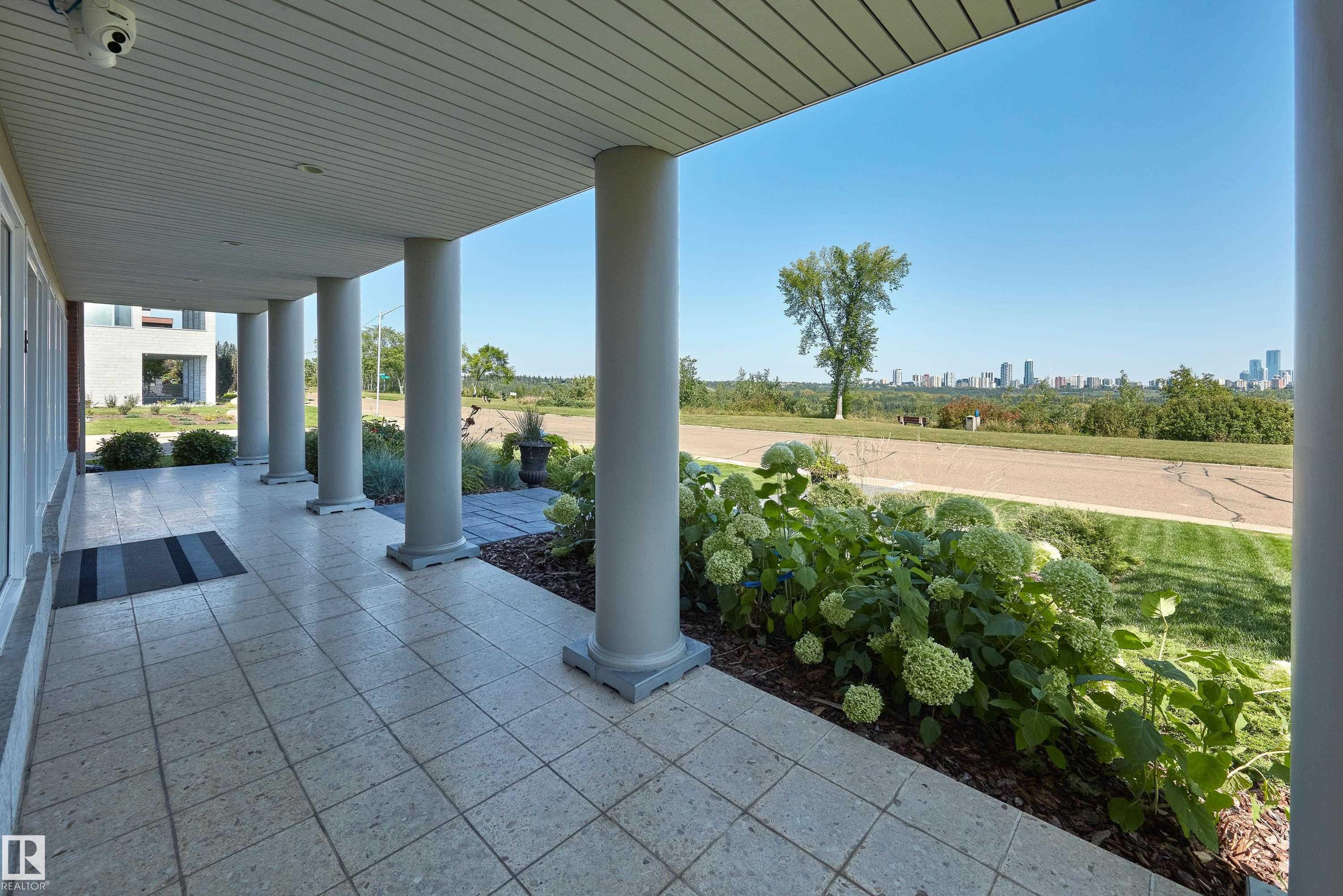 Commanding one of the most breathtaking vantage points in Edmonton, this Georgian-inspired estate offers uninterrupted views of the river valley and iconic downtown skyline. Fully reimagined in 2000 by Rescom Construction, renowned architects, and master craftsmen, the home blends timeless architecture with enduring quality. Expansive windows flood the interior with natural light, while a second-floor patio with invisible glass rails invites you to take in breathtaking vistas. Inside, elegant stone surfaces, bespoke detailing, and a gas fireplace define spaces designed for both grand entertaining and intimate moments. The private backyard provides a rare retreat, balanced by the convenience of a triple-car garage. A home of this caliber is not simply a residence, it is a statement of legacy, offering the discerning buyer an unparalleled lifestyle.