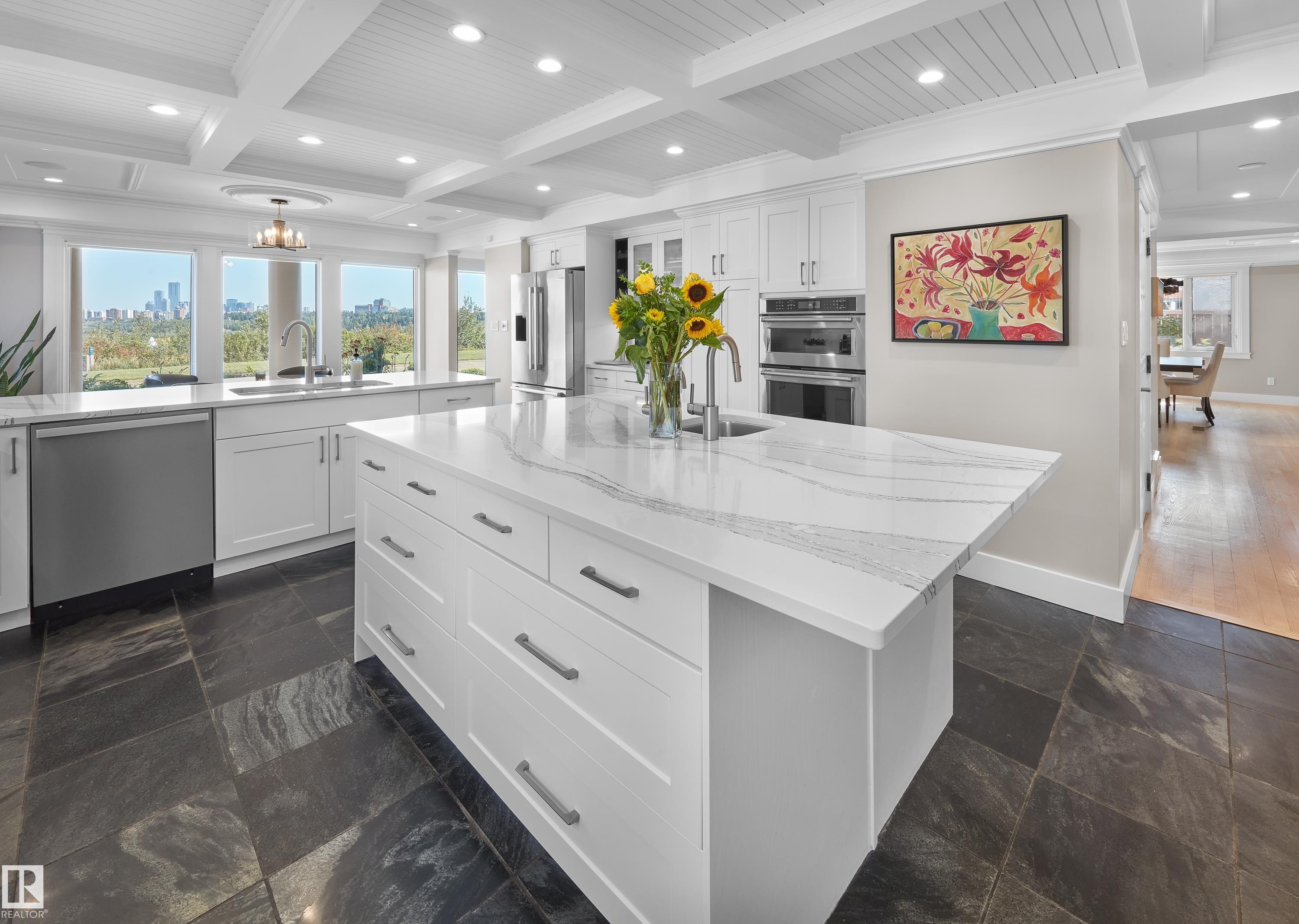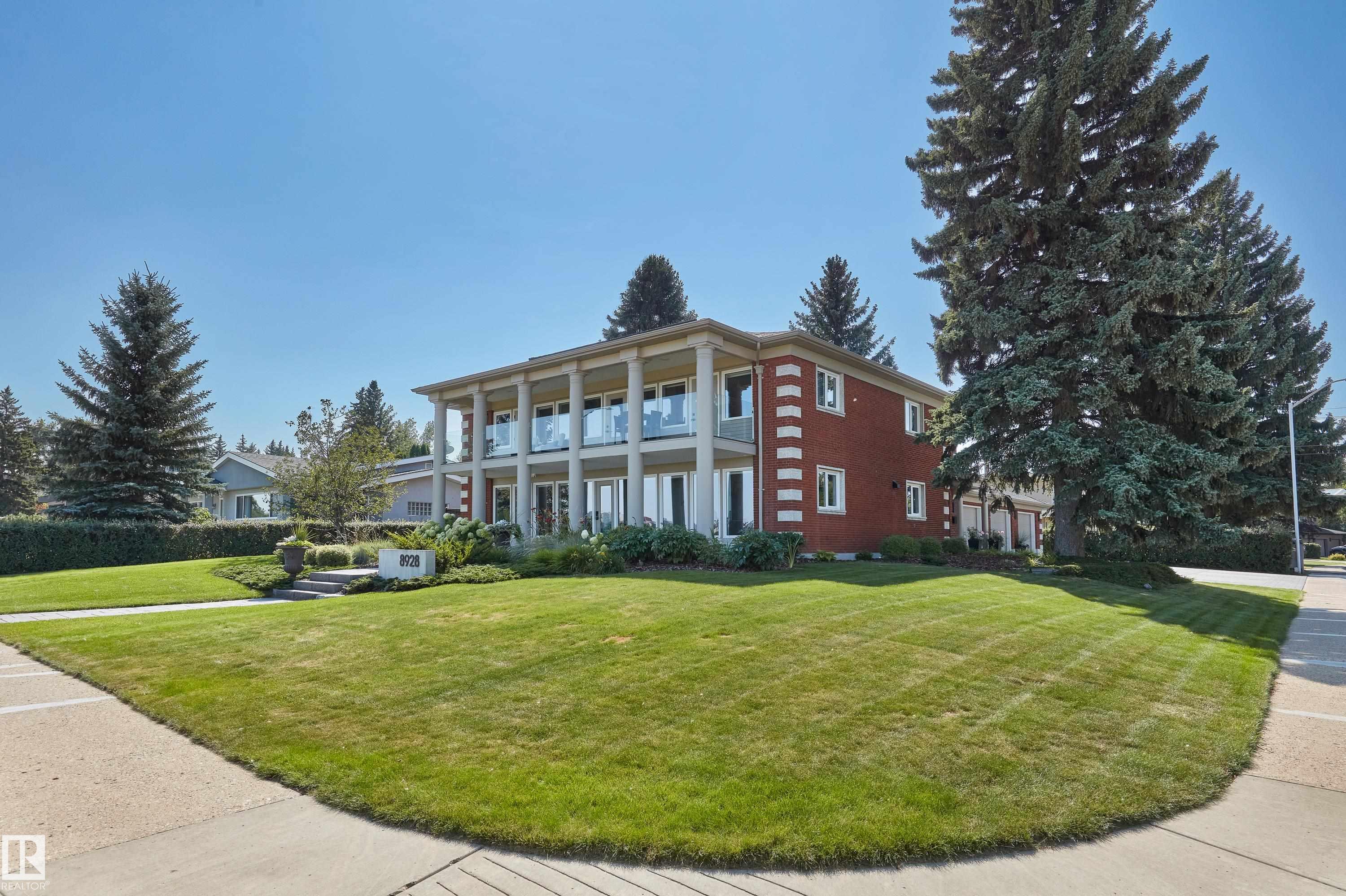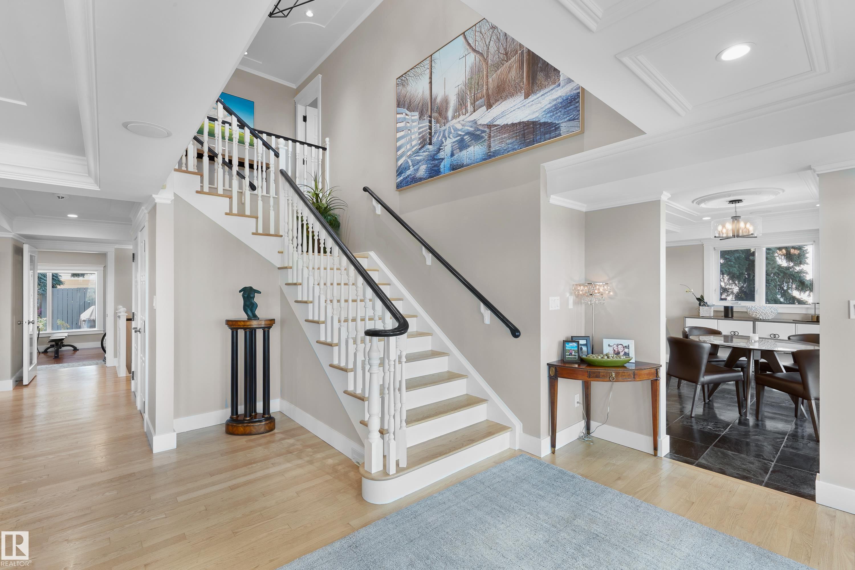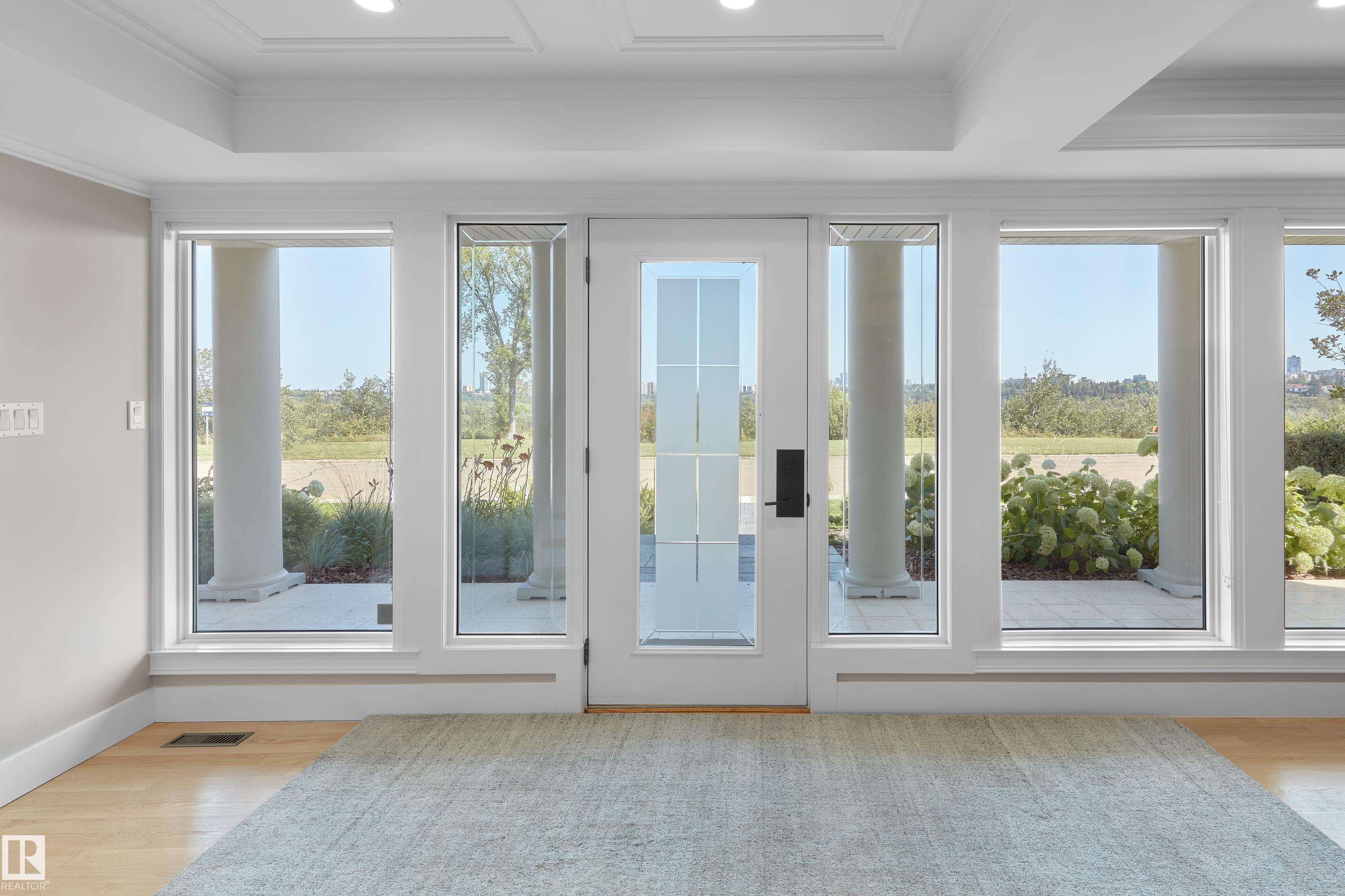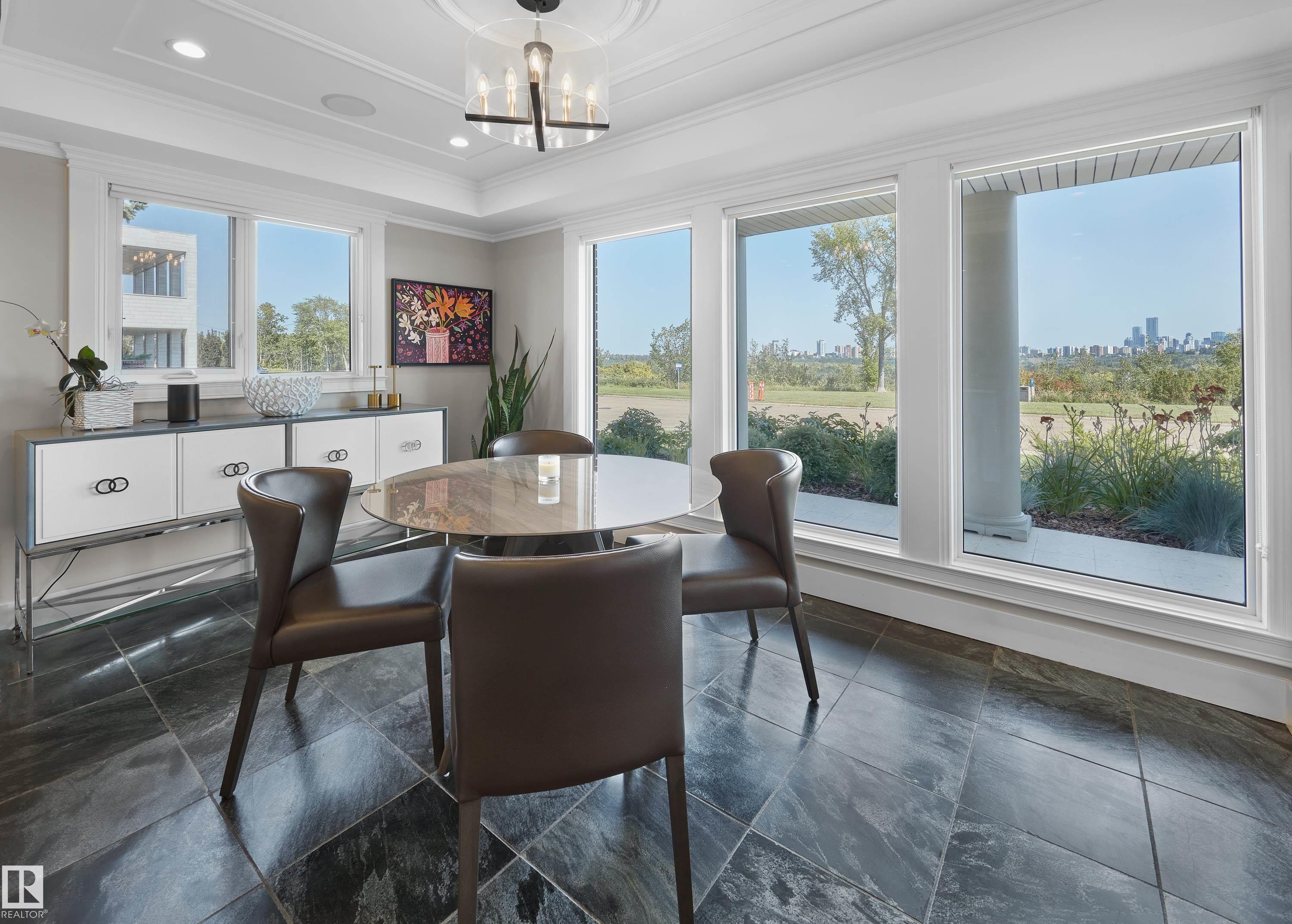Commanding one of the most breathtaking vantage points in Edmonton, this Georgian-inspired estate offers uninterrupted views of the river valley and iconic downtown skyline. Fully reimagined in 2000 by Rescom Construction, renowned architects, and master craftsmen, the home blends timeless architecture with enduring quality. Expansive windows flood the interior with natural light, while a second-floor patio with invisible glass rails invites you to take in breathtaking vistas. Inside, elegant stone surfaces, bespoke detailing, and a gas fireplace define spaces designed for both grand entertaining and intimate moments. The private backyard provides a rare retreat, balanced by the convenience of a triple-car garage. A home of this caliber is not simply a residence, it is a statement of legacy, offering the discerning buyer an unparalleled lifestyle.