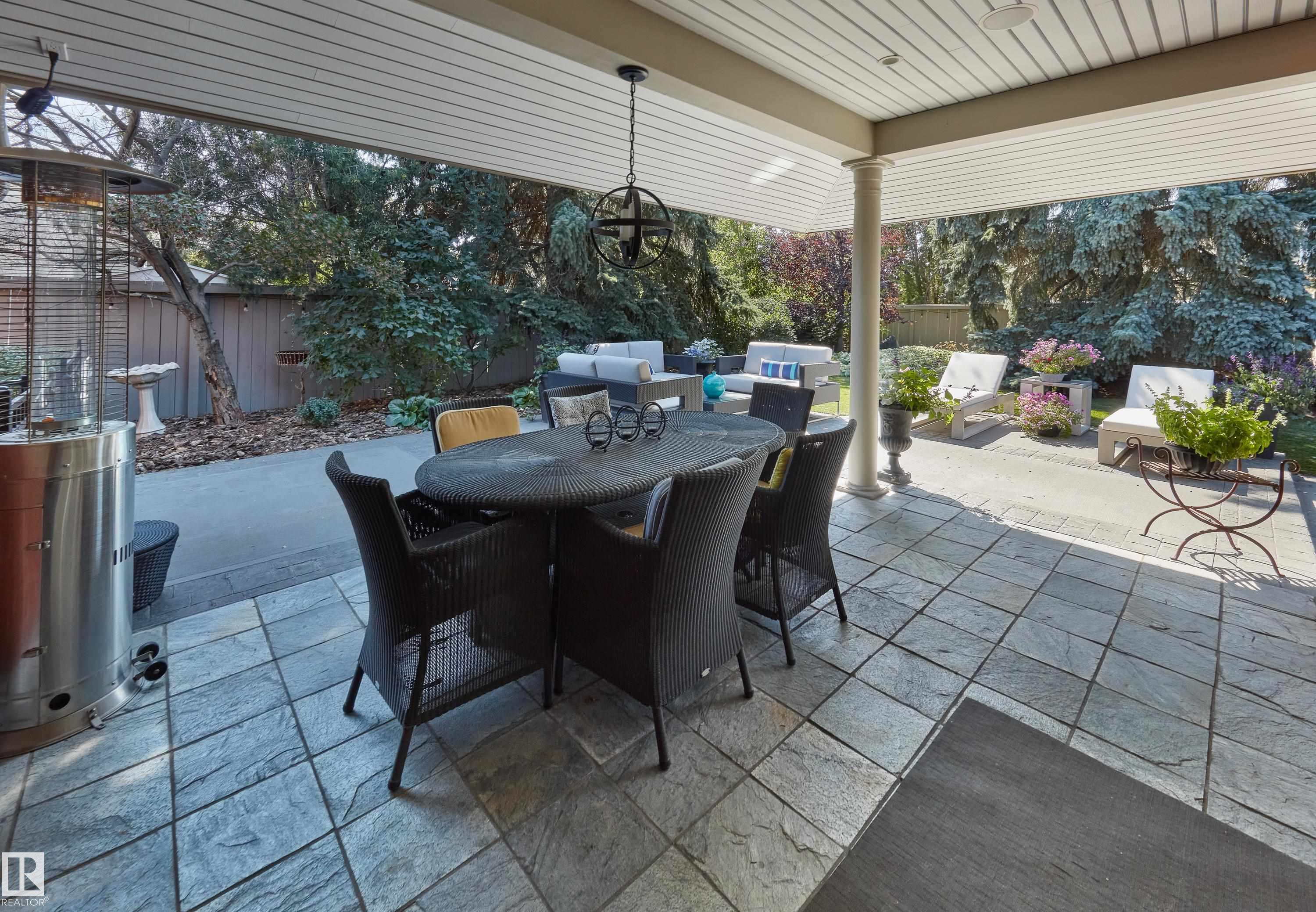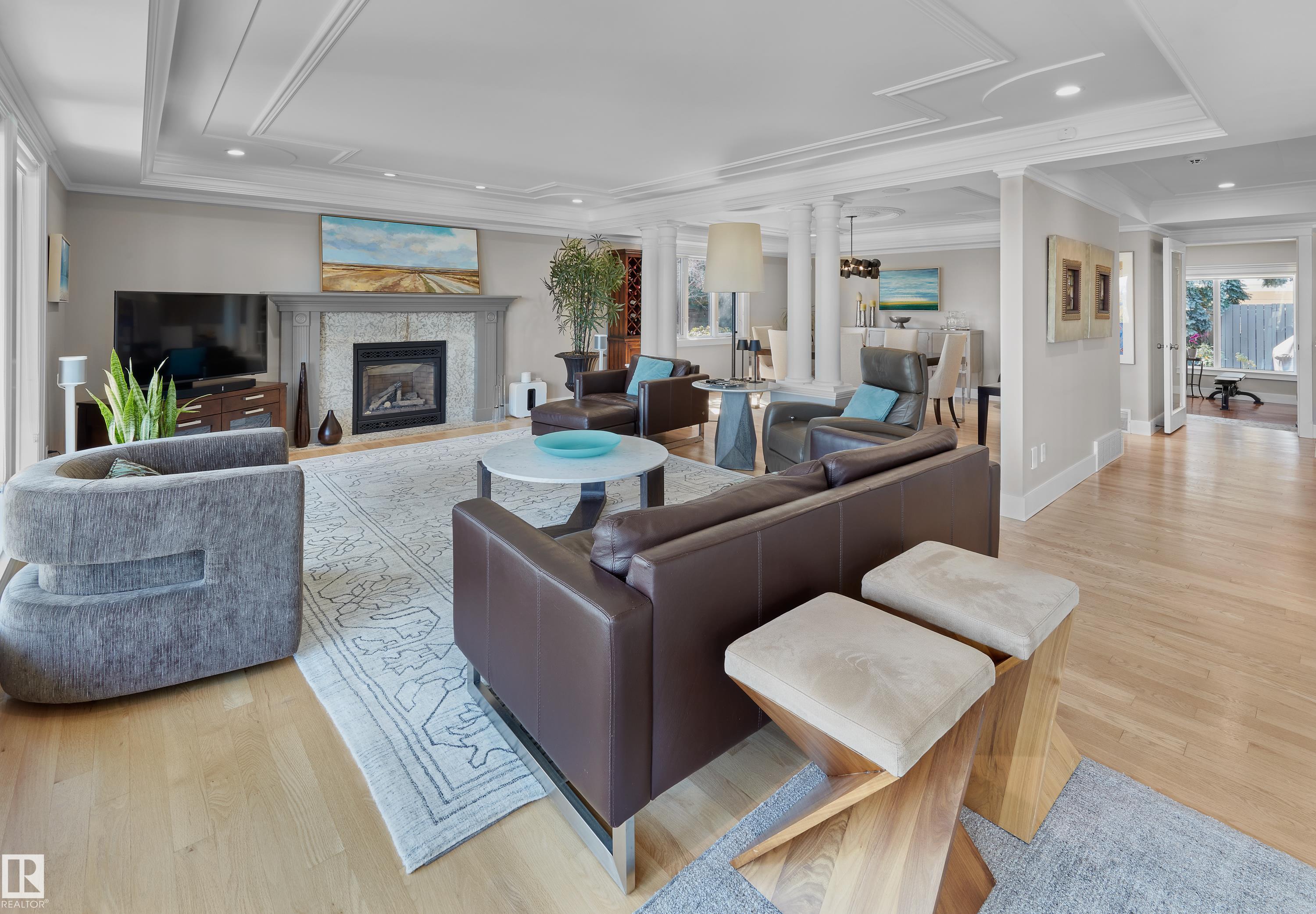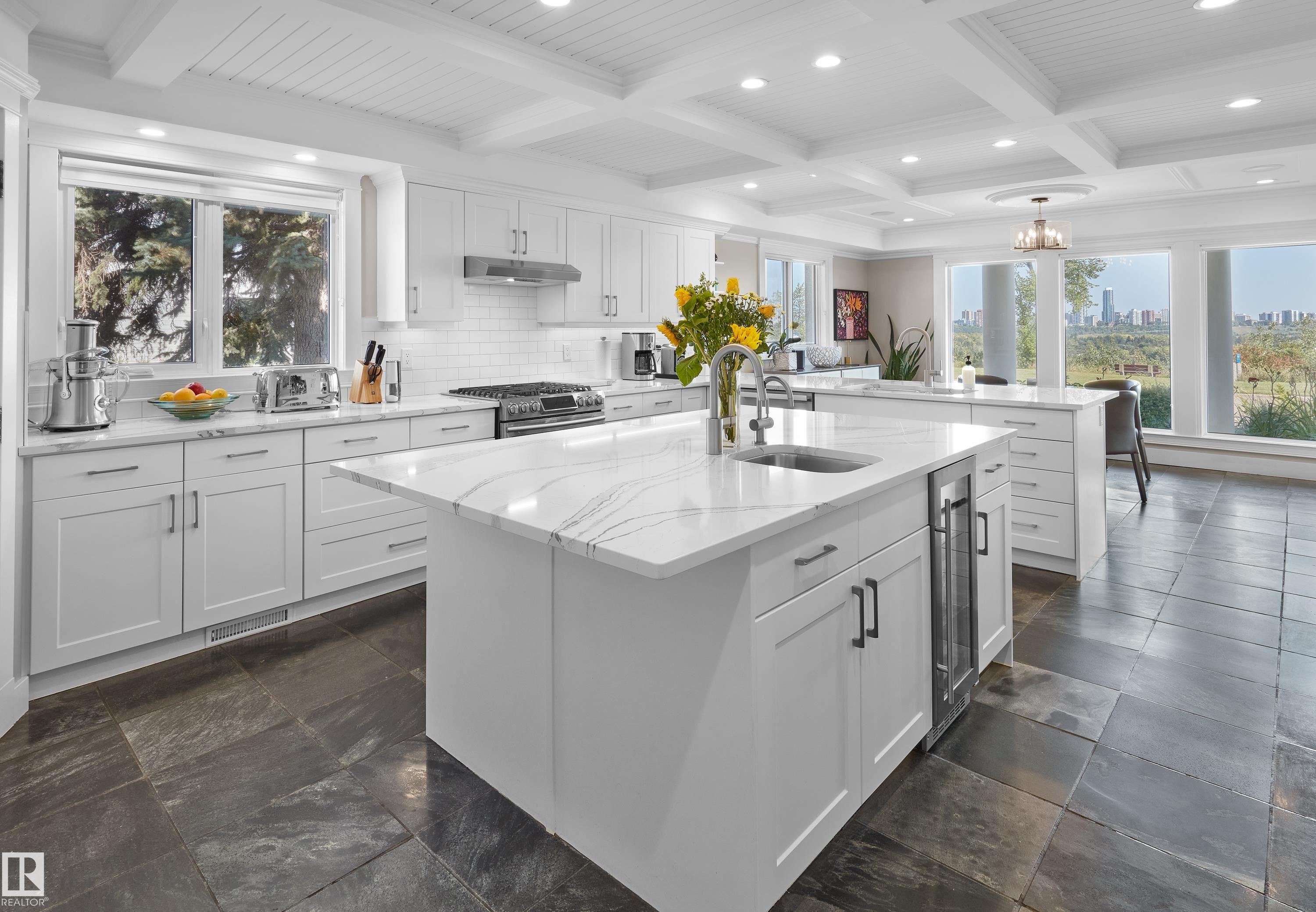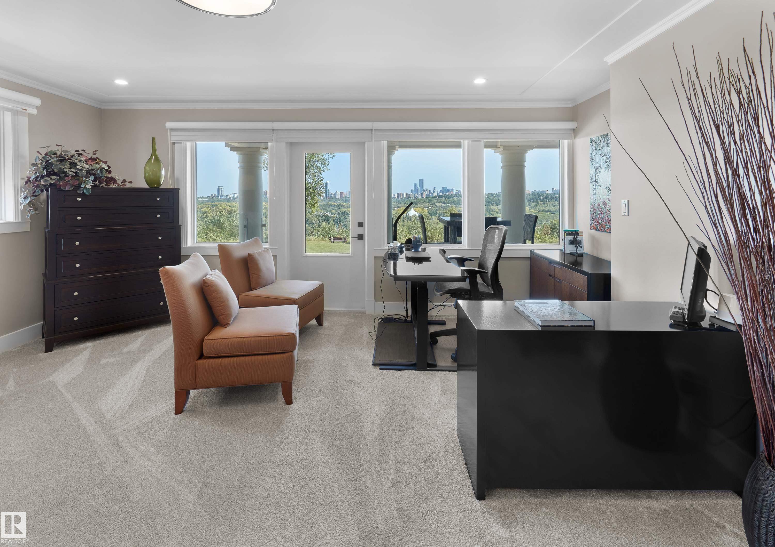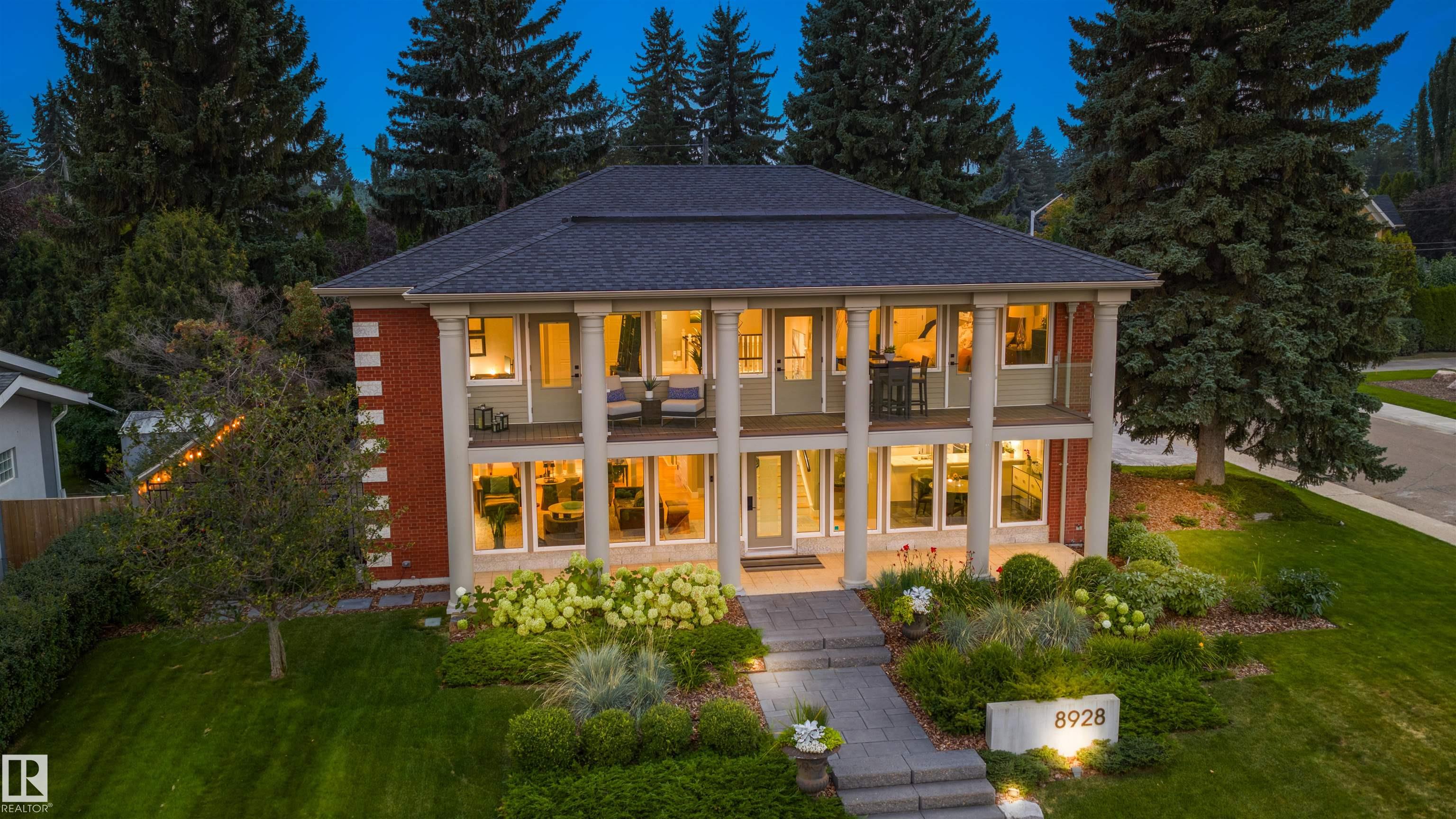 Commanding one of the most breathtaking vantage points in Edmonton, this Georgian-inspired estate offers uninterrupted views of the river valley and iconic downtown skyline. Fully reimagined in 2000 by Rescom Construction, renowned architects, and master craftsmen, the home blends timeless architecture with enduring quality. Expansive windows flood the interior with natural light, while a second-floor patio with invisible glass rails invites you to take in breathtaking vistas. Inside, elegant stone surfaces, bespoke detailing, and a gas fireplace define spaces designed for both grand entertaining and intimate moments. The private backyard provides a rare retreat, balanced by the convenience of a triple-car garage. A home of this caliber is not simply a residence, it is a statement of legacy, offering the discerning buyer an unparalleled lifestyle.