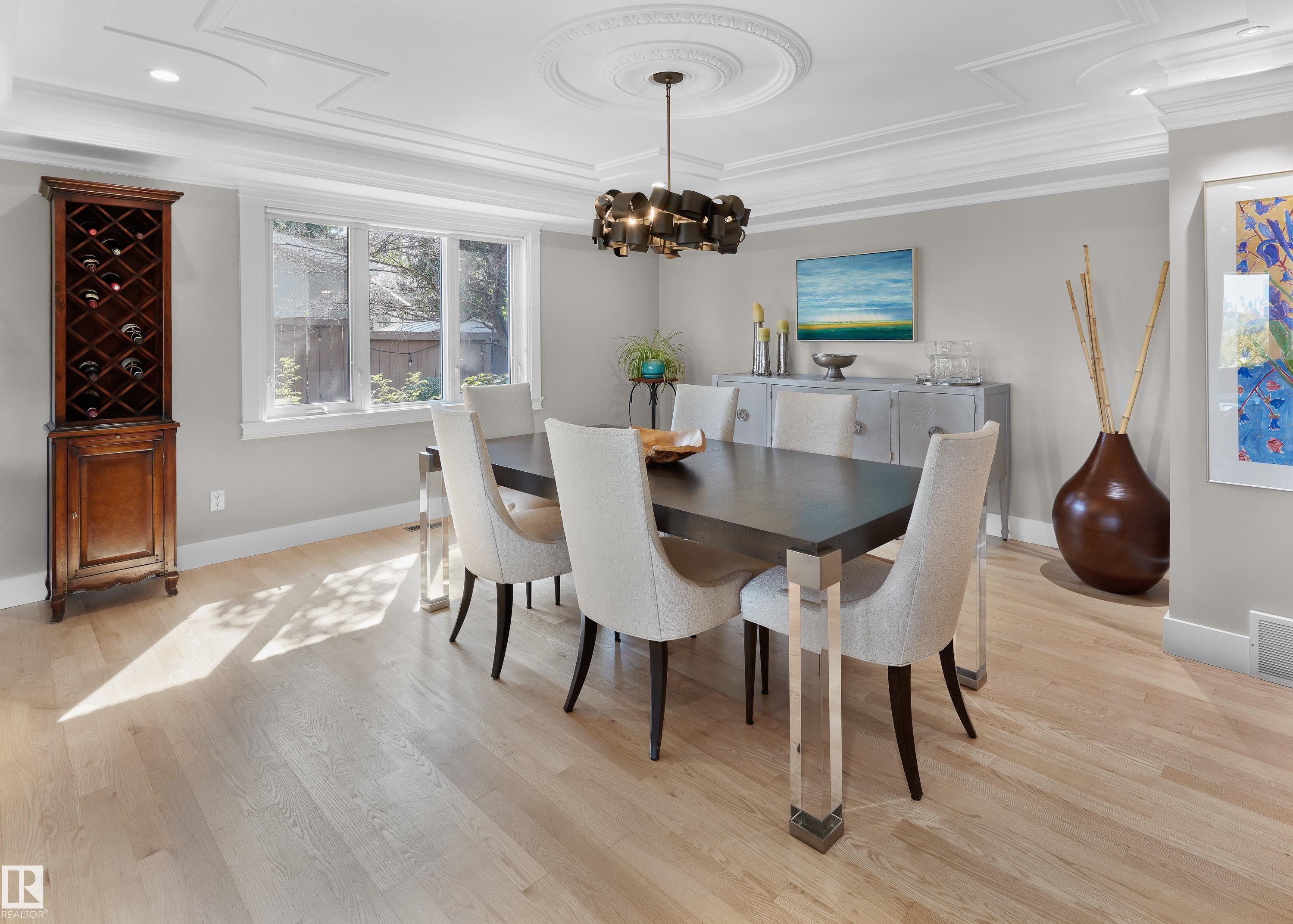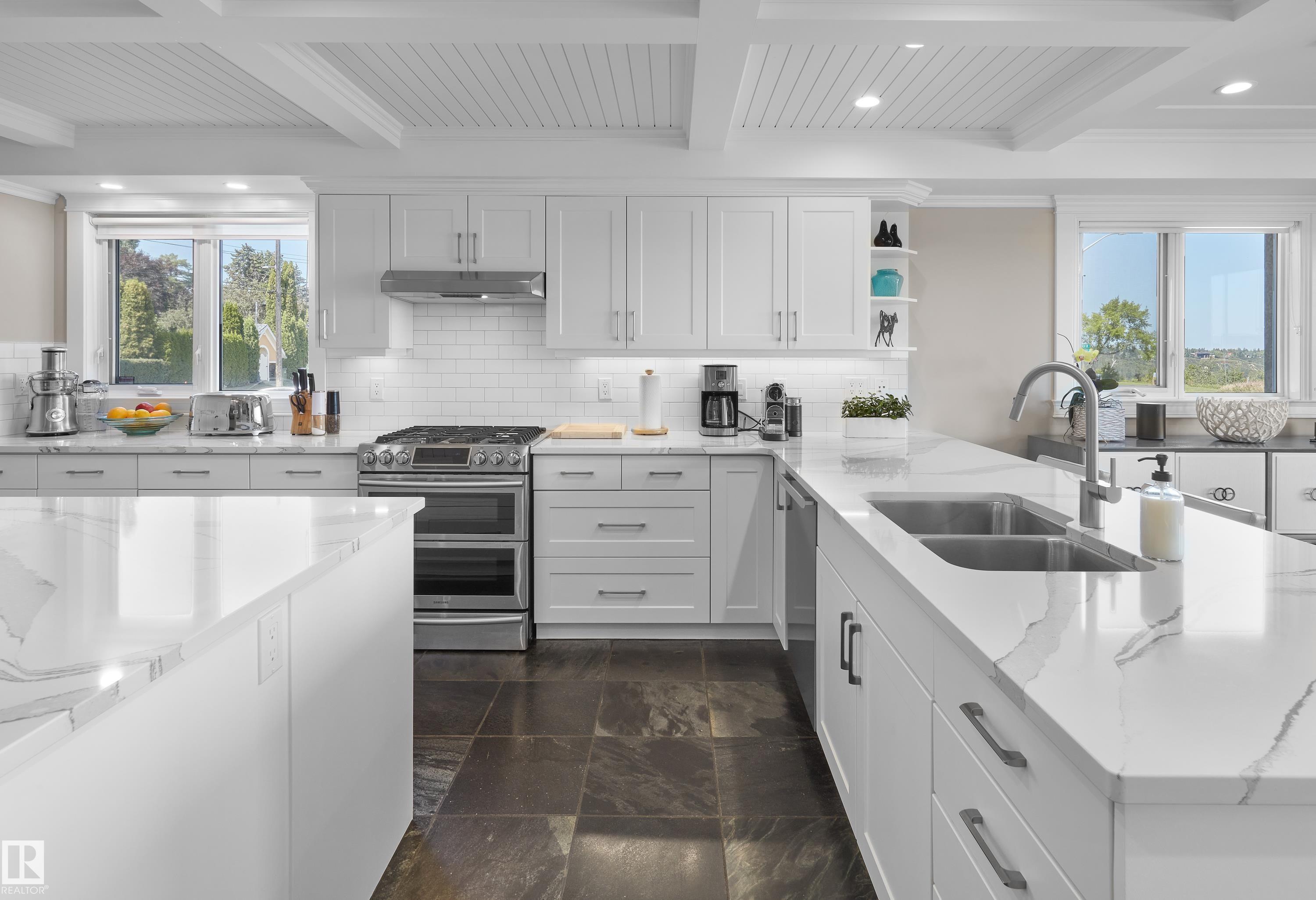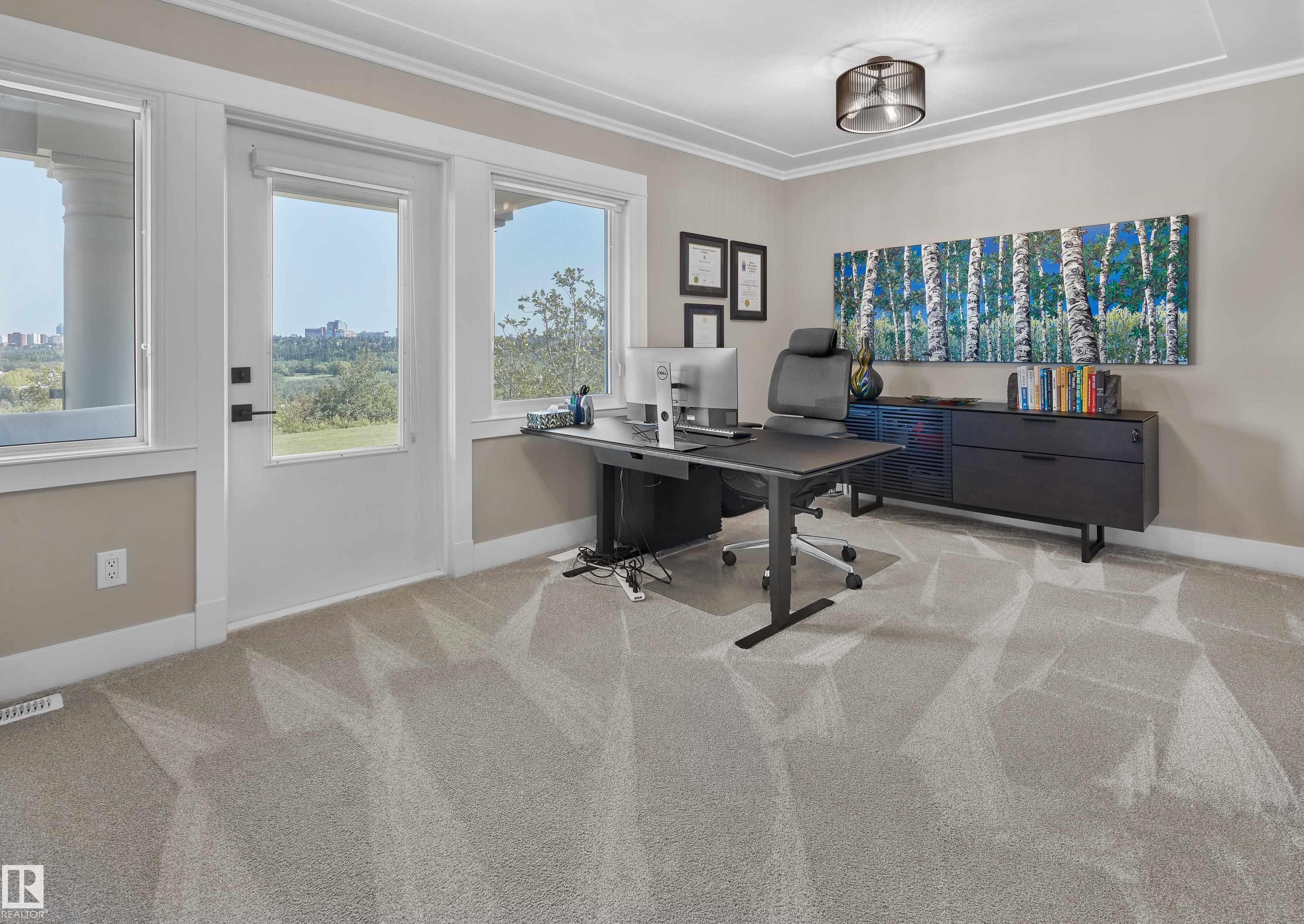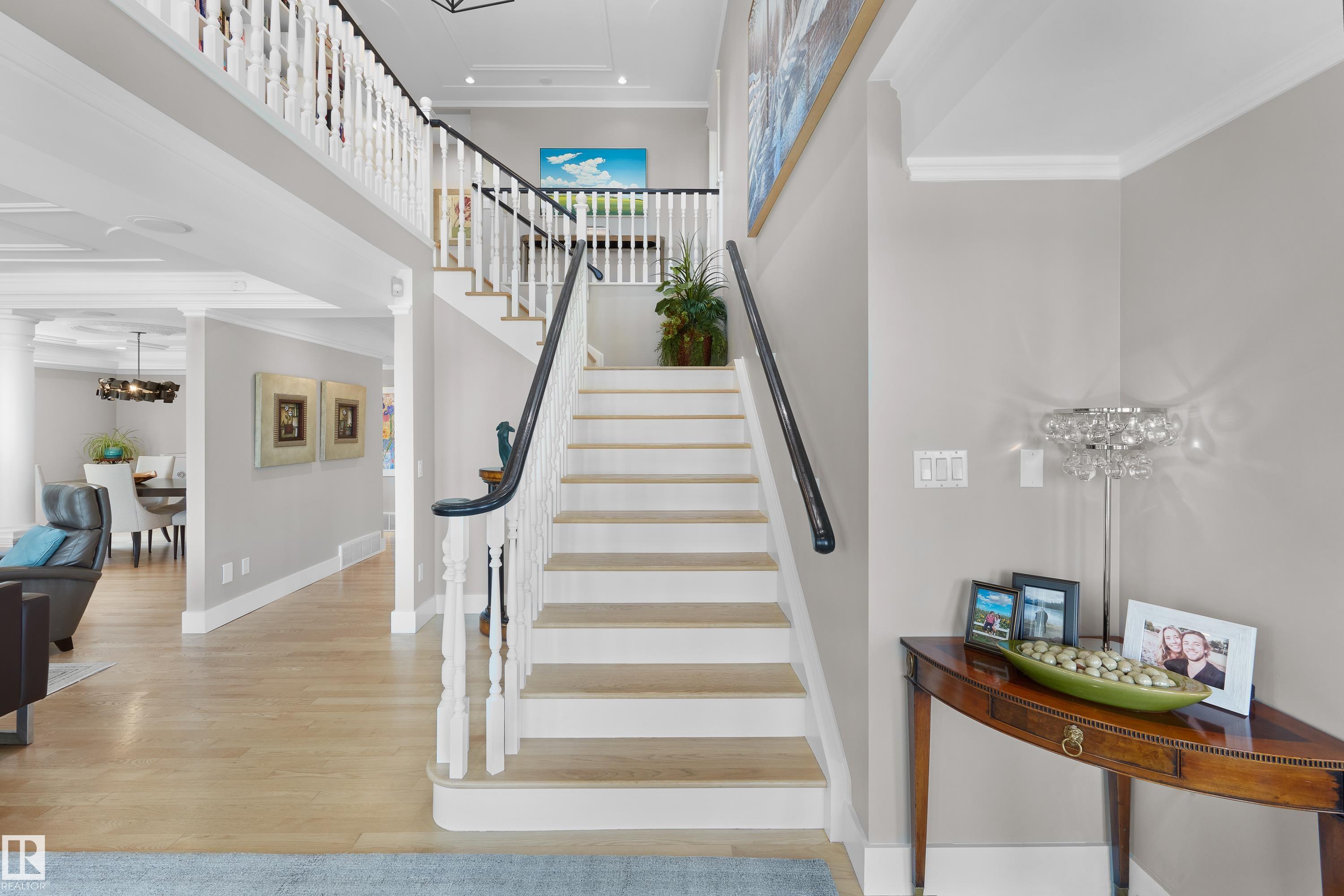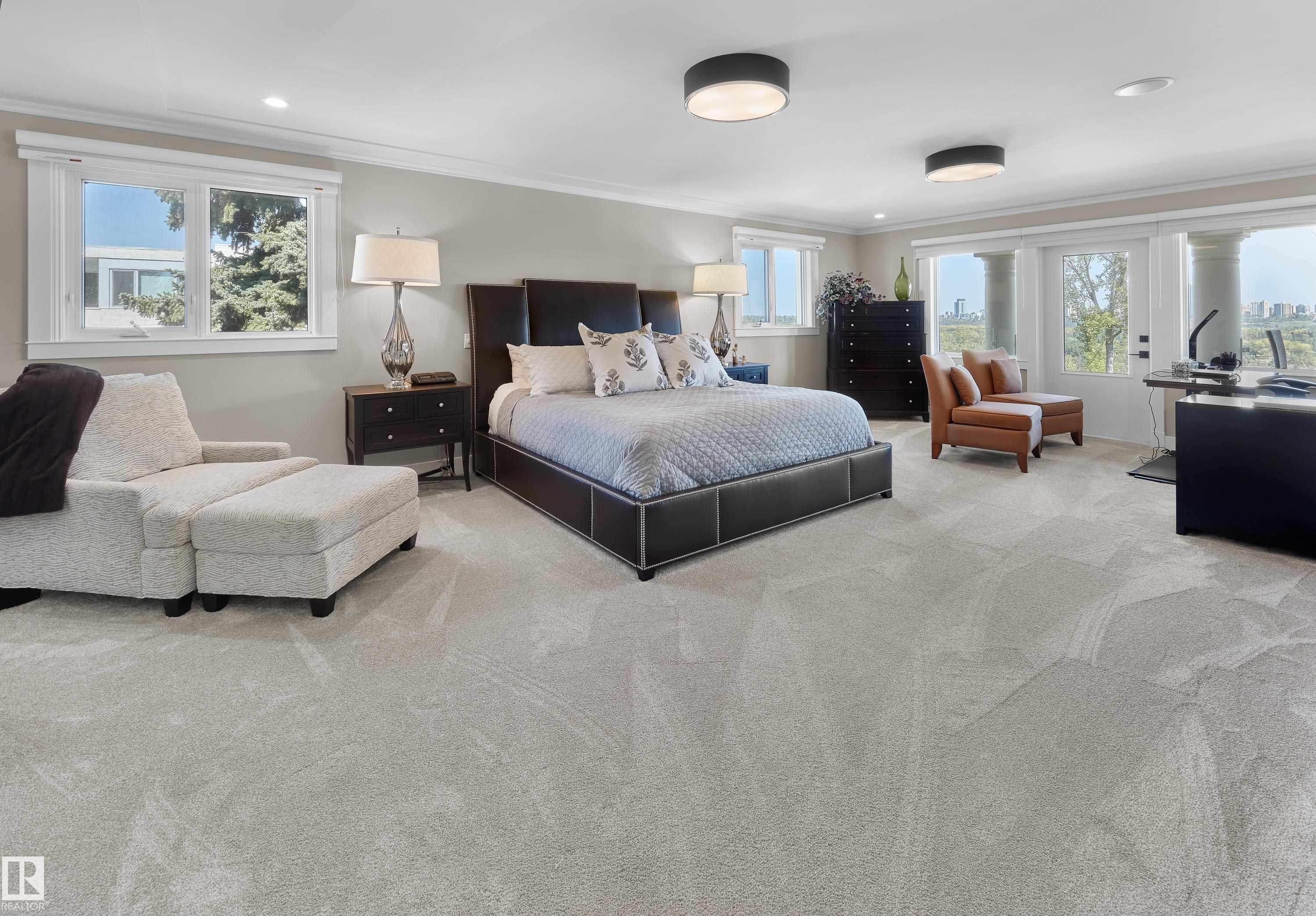 Commanding one of the most breathtaking vantage points in Edmonton, this Georgian-inspired estate offers uninterrupted views of the river valley and iconic downtown skyline. Fully reimagined in 2000 by Rescom Construction, renowned architects, and master craftsmen, the home blends timeless architecture with enduring quality. Expansive windows flood the interior with natural light, while a second-floor patio with invisible glass rails invites you to take in breathtaking vistas. Inside, elegant stone surfaces, bespoke detailing, and a gas fireplace define spaces designed for both grand entertaining and intimate moments. The private backyard provides a rare retreat, balanced by the convenience of a triple-car garage. A home of this caliber is not simply a residence, it is a statement of legacy, offering the discerning buyer an unparalleled lifestyle.