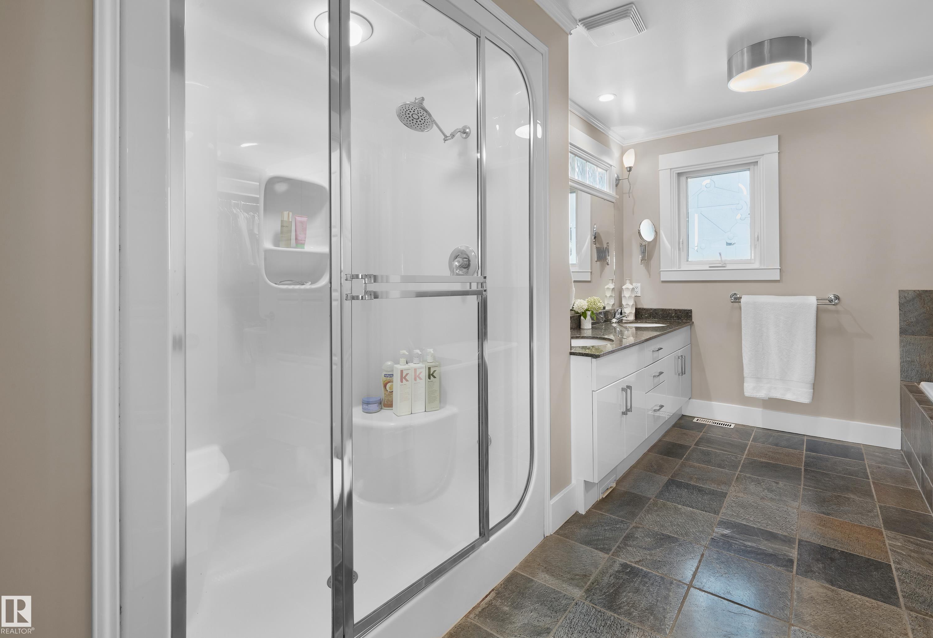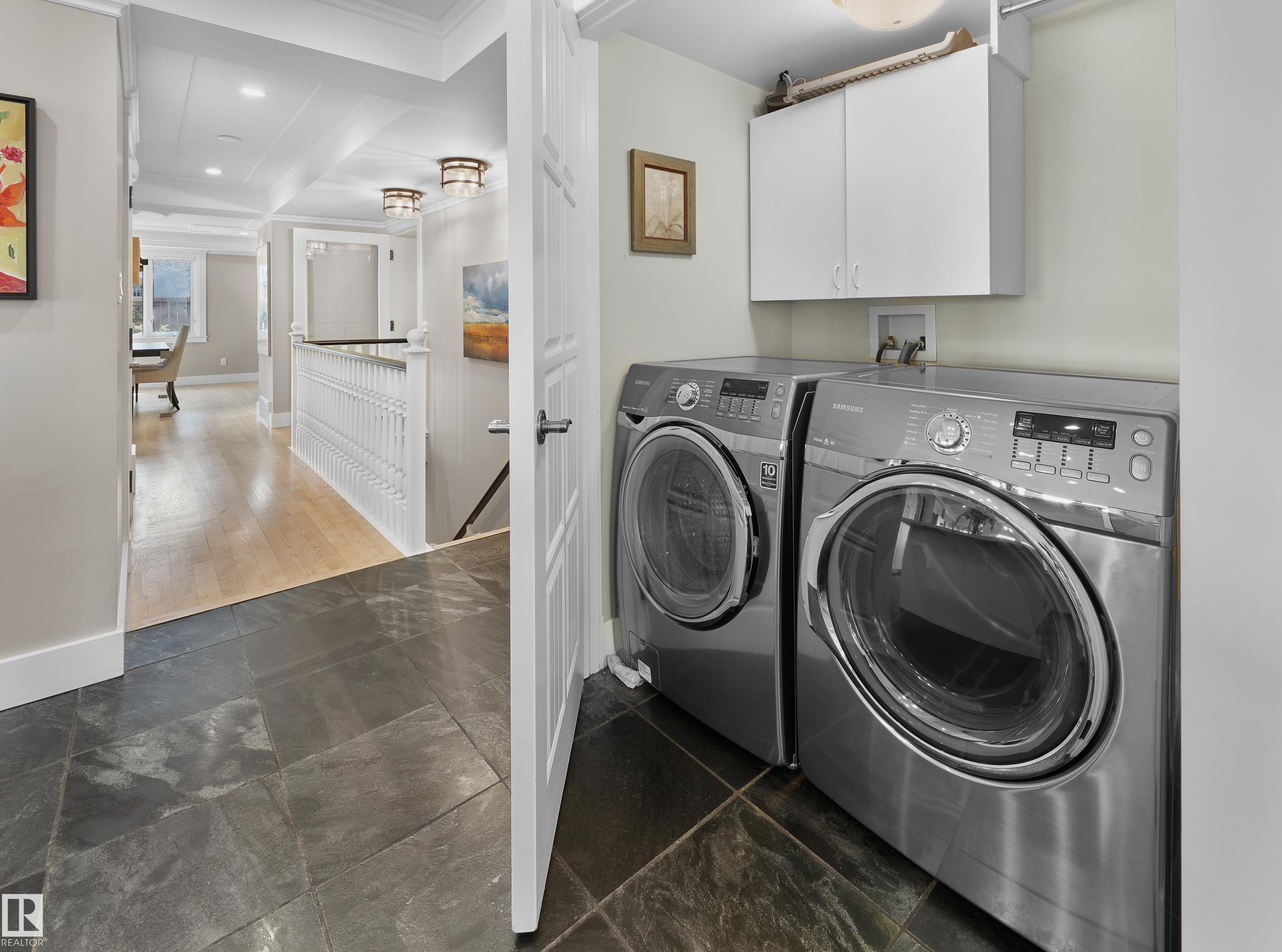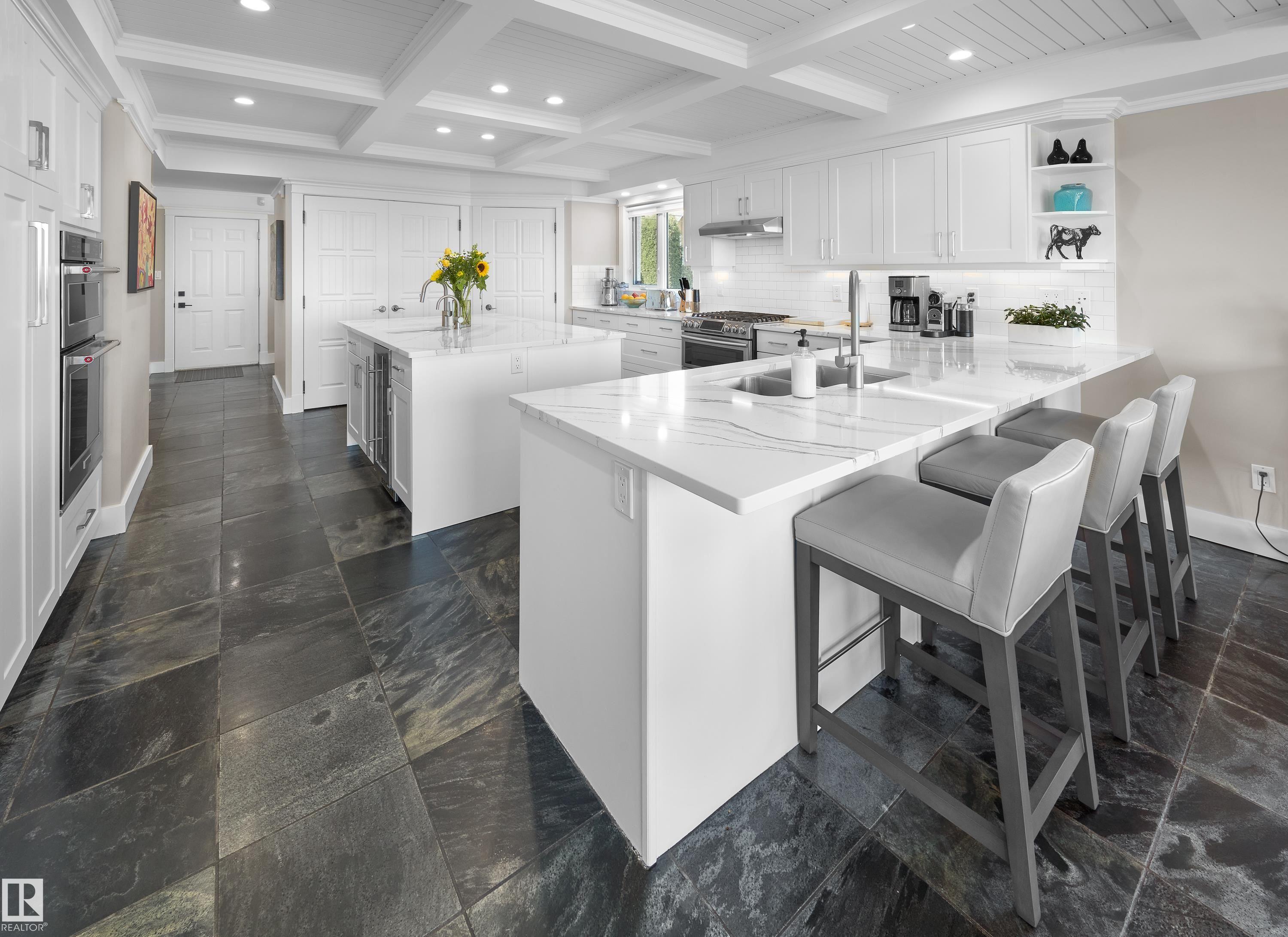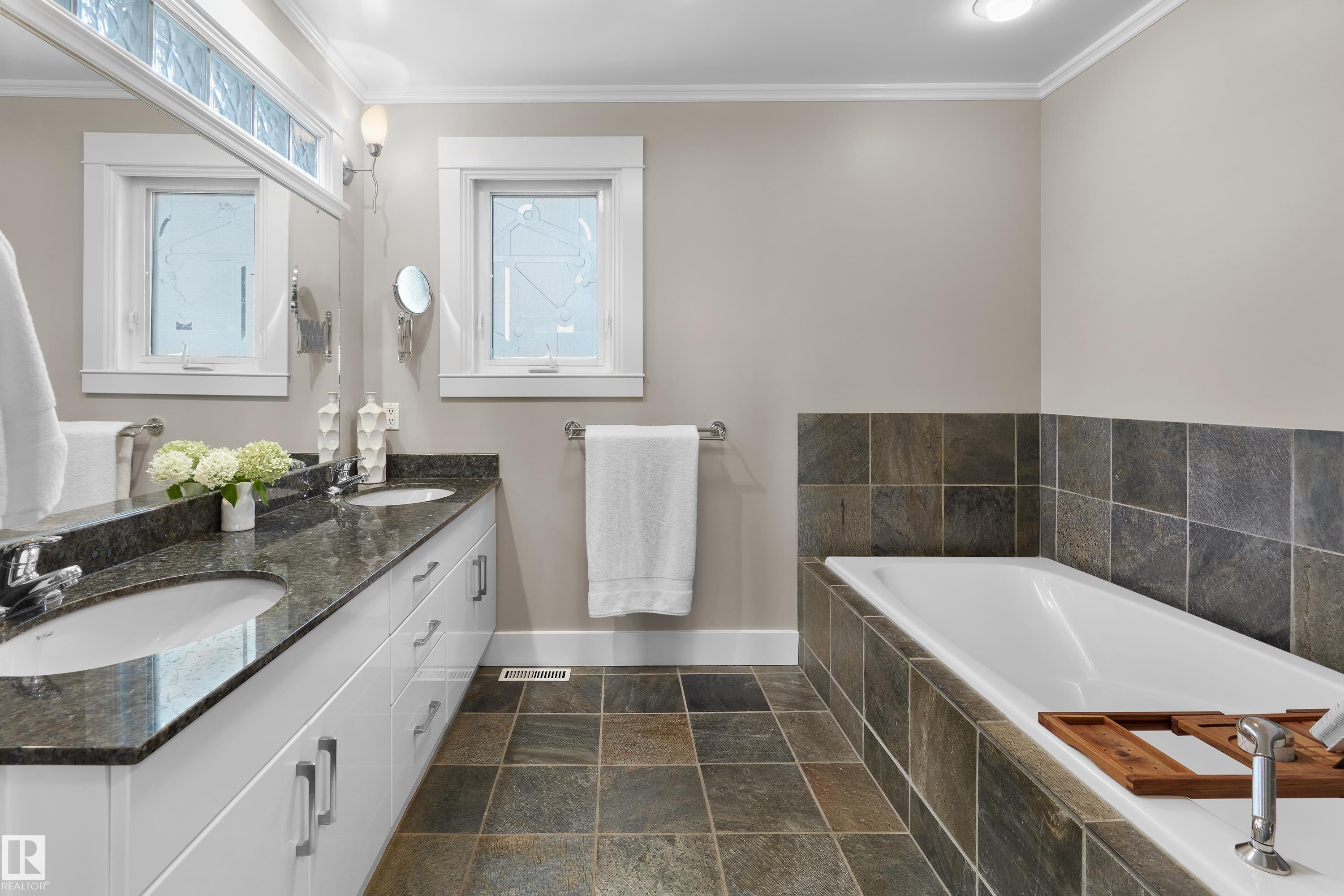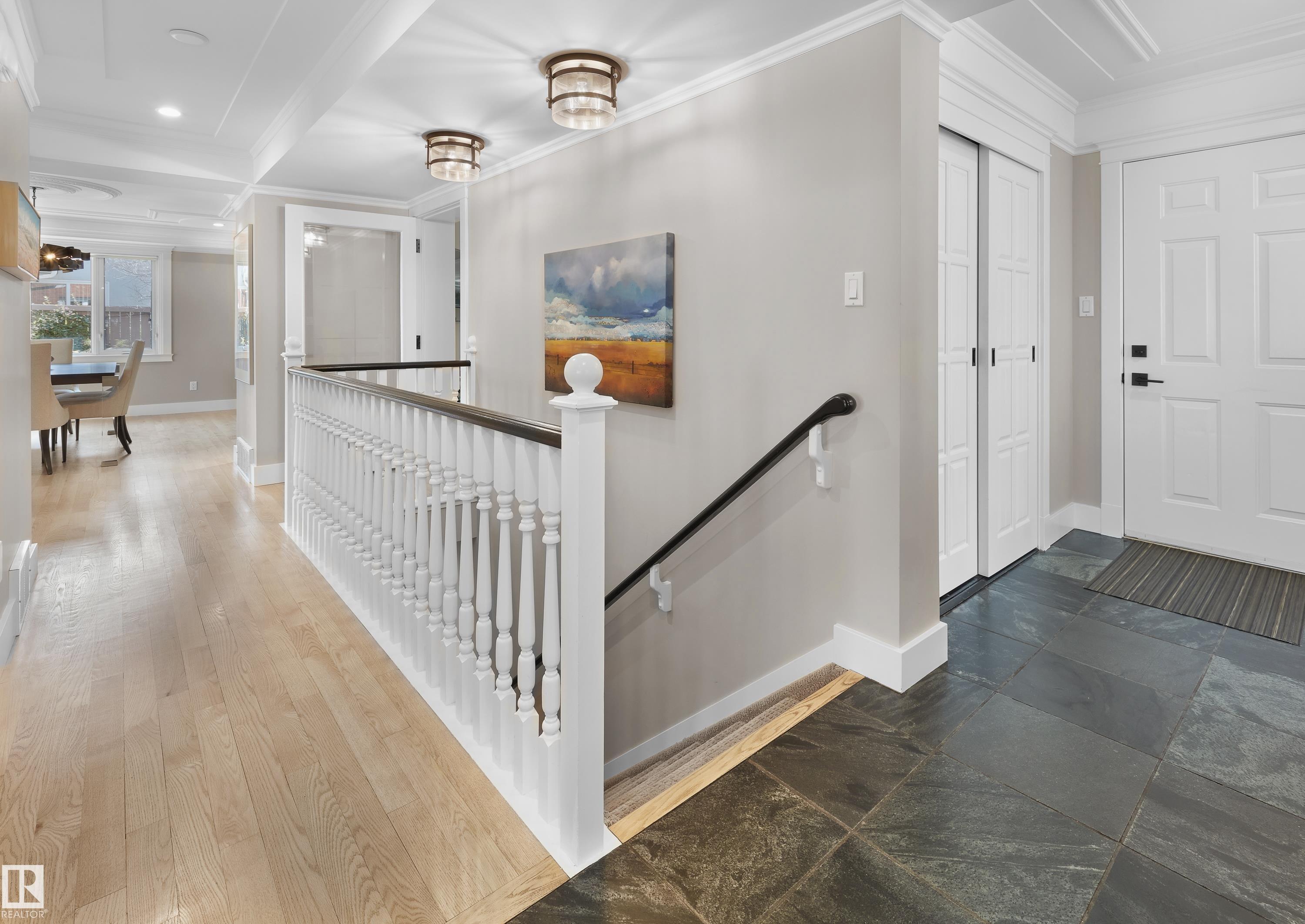 Commanding one of the most breathtaking vantage points in Edmonton, this Georgian-inspired estate offers uninterrupted views of the river valley and iconic downtown skyline. Fully reimagined in 2000 by Rescom Construction, renowned architects, and master craftsmen, the home blends timeless architecture with enduring quality. Expansive windows flood the interior with natural light, while a second-floor patio with invisible glass rails invites you to take in breathtaking vistas. Inside, elegant stone surfaces, bespoke detailing, and a gas fireplace define spaces designed for both grand entertaining and intimate moments. The private backyard provides a rare retreat, balanced by the convenience of a triple-car garage. A home of this caliber is not simply a residence, it is a statement of legacy, offering the discerning buyer an unparalleled lifestyle.