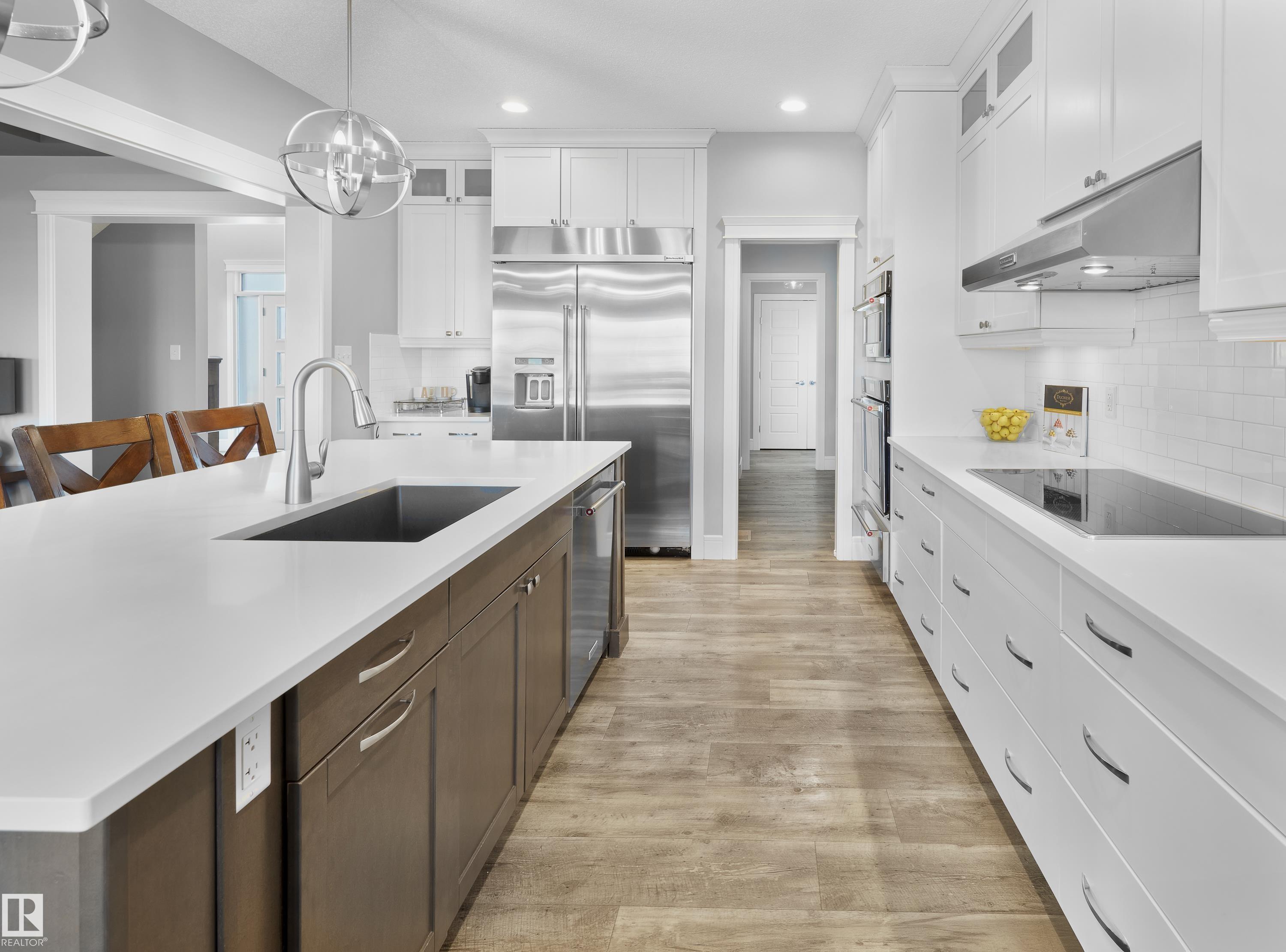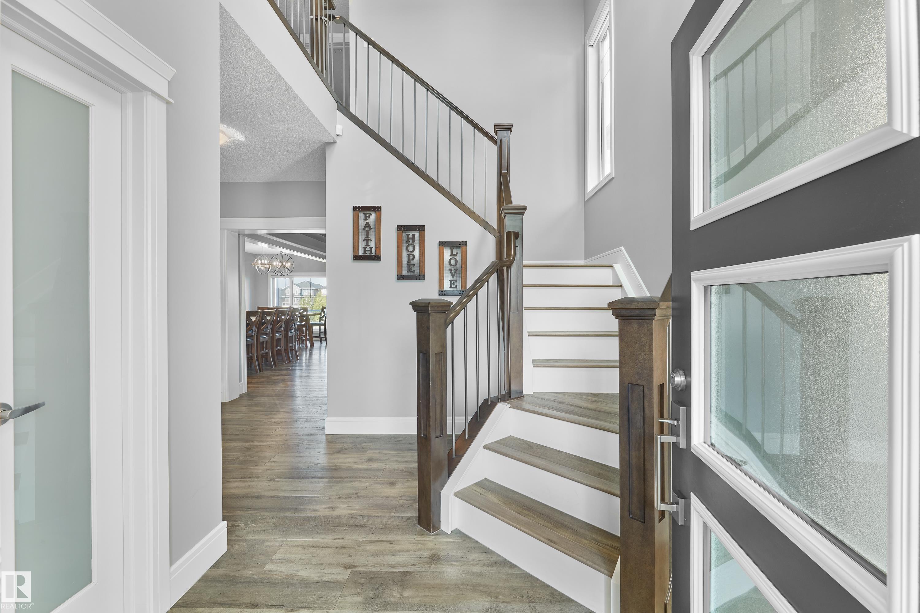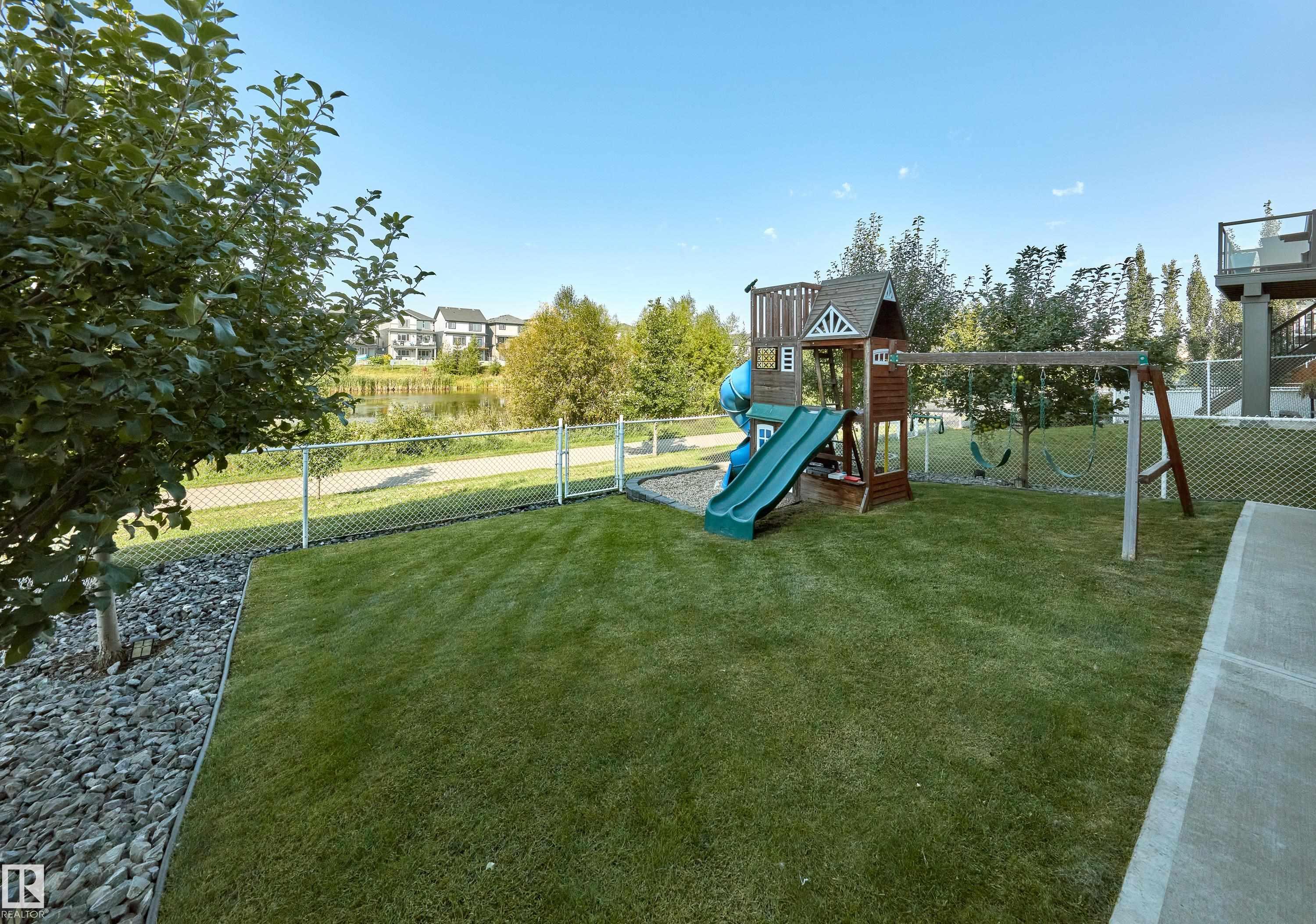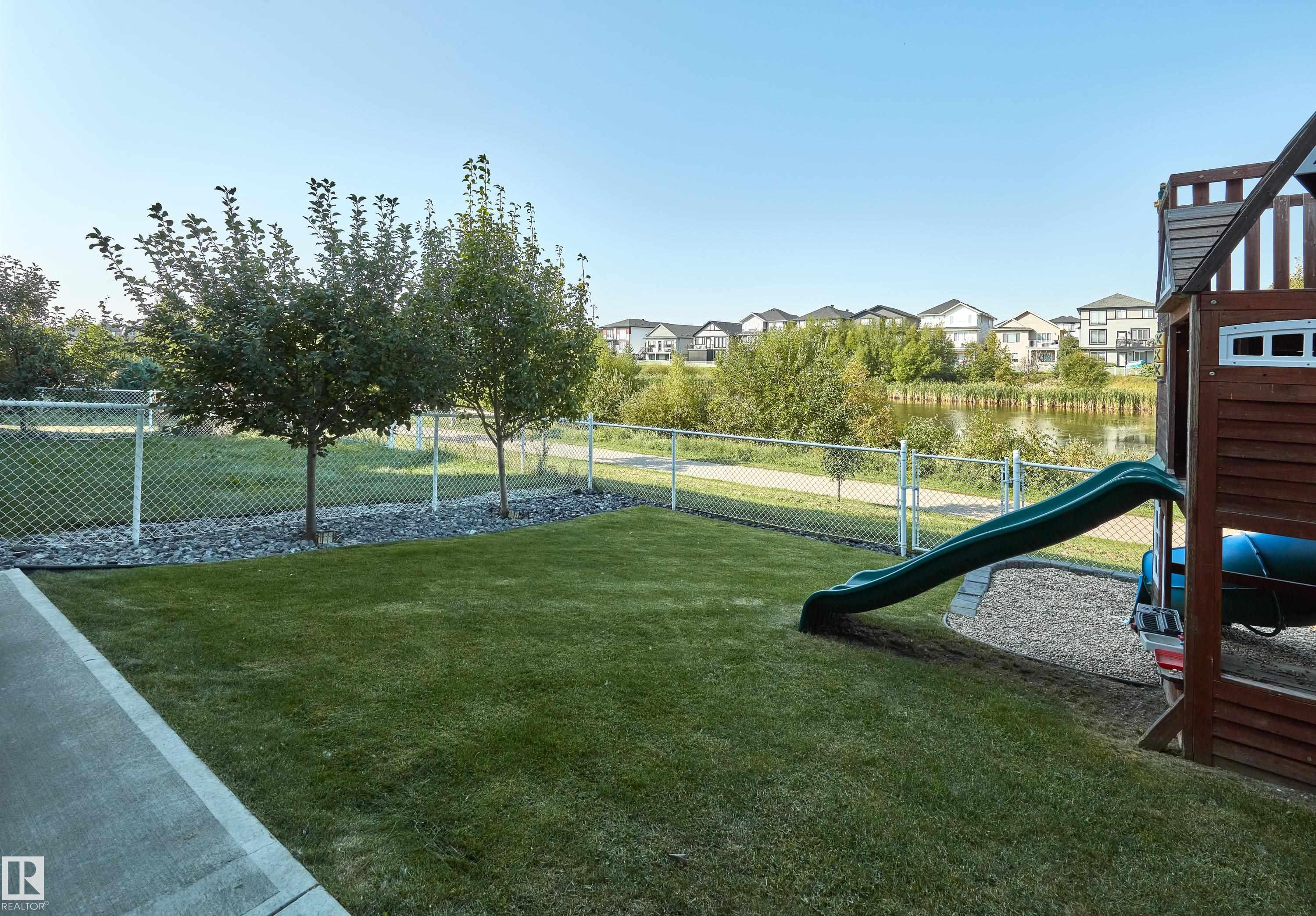 This is a must see property! Tranquil water backdrop from the partially covered upper deck and direct access to the walking path, this Secord residence is a rare blend of beauty and function. The owners reimagined the main floor to feature a custom mudroom and a walk-through pantry. Both are must-see highlights of the home. The chef's kitchen inspires connection with its induction cooktop, built-in oven, warming drawer, generous island, and elegant finishes. Tray ceilings crown the living room, anchored by a gas fireplace, while upstairs the primary suite is a serene retreat with a freestanding soaker tub, double shower, and designer walk-in closet. With 3+1 bedrooms and 3.5 baths, there's room for all. A finished walkout basement extends to a covered backyard patio, lush landscaping with irrigation, and a children's play centre. Central air, a double garage, and thoughtful design complete this light-filled, custom property. An immaculate home that must be seen to be fully appreciated.