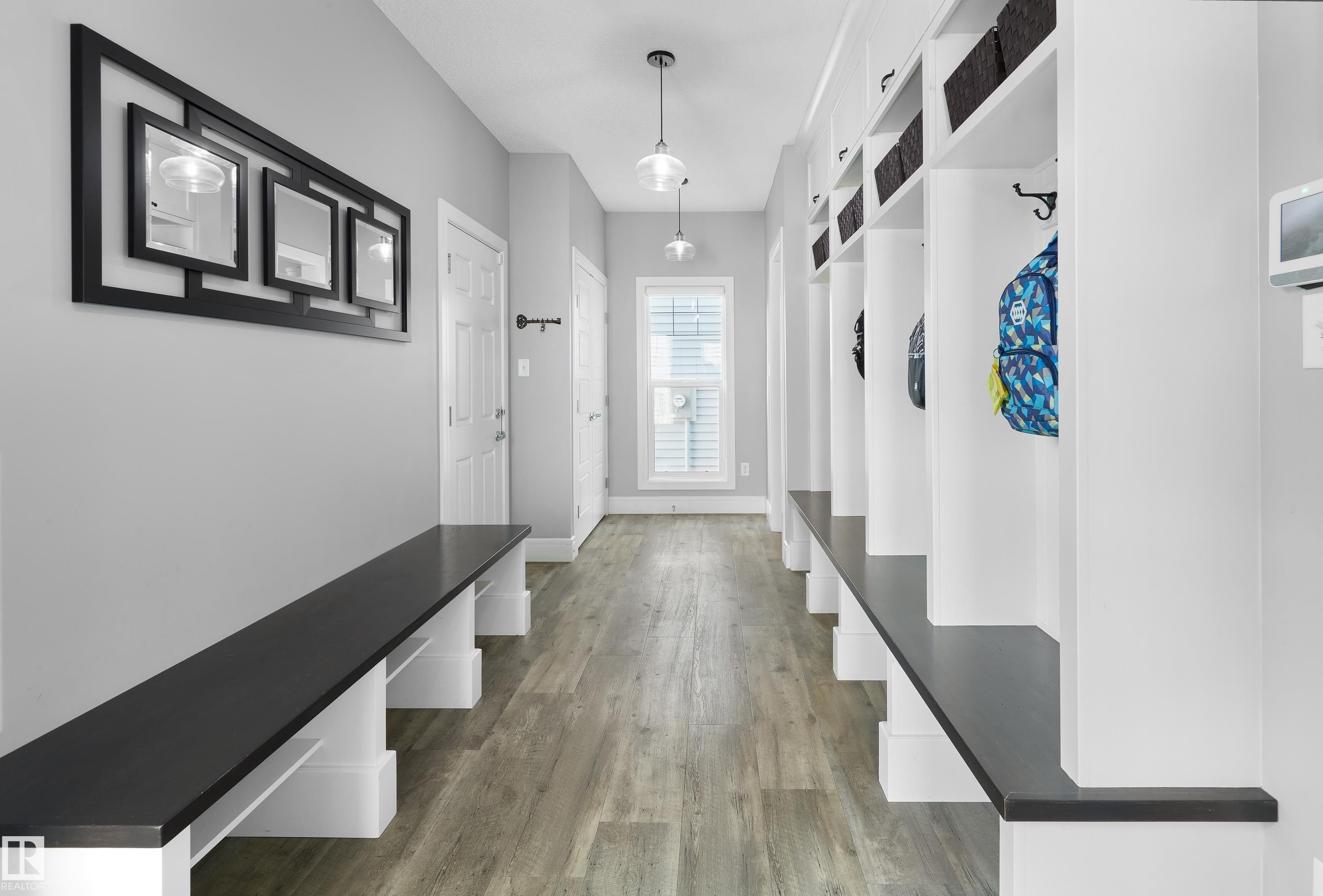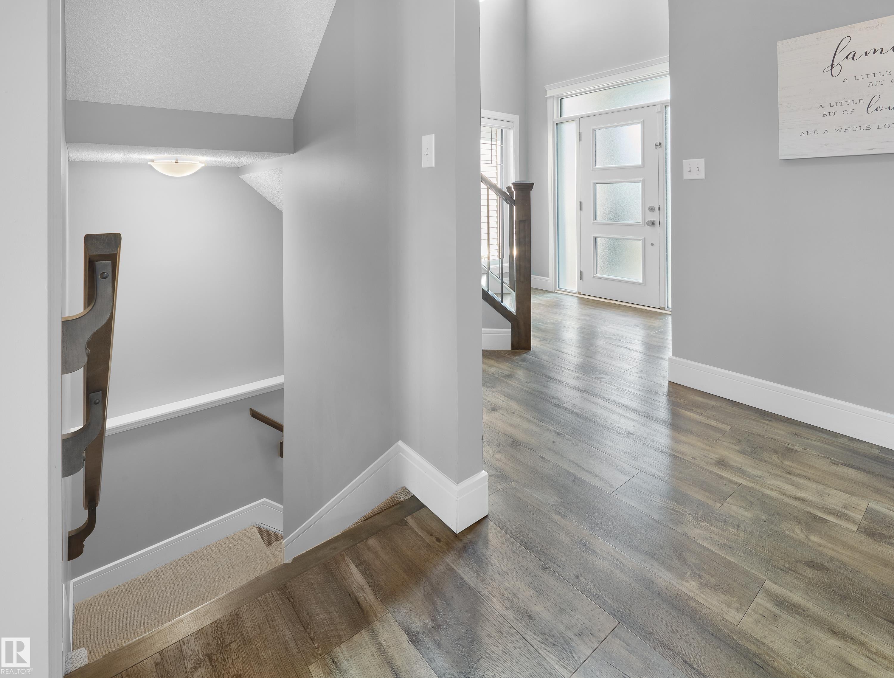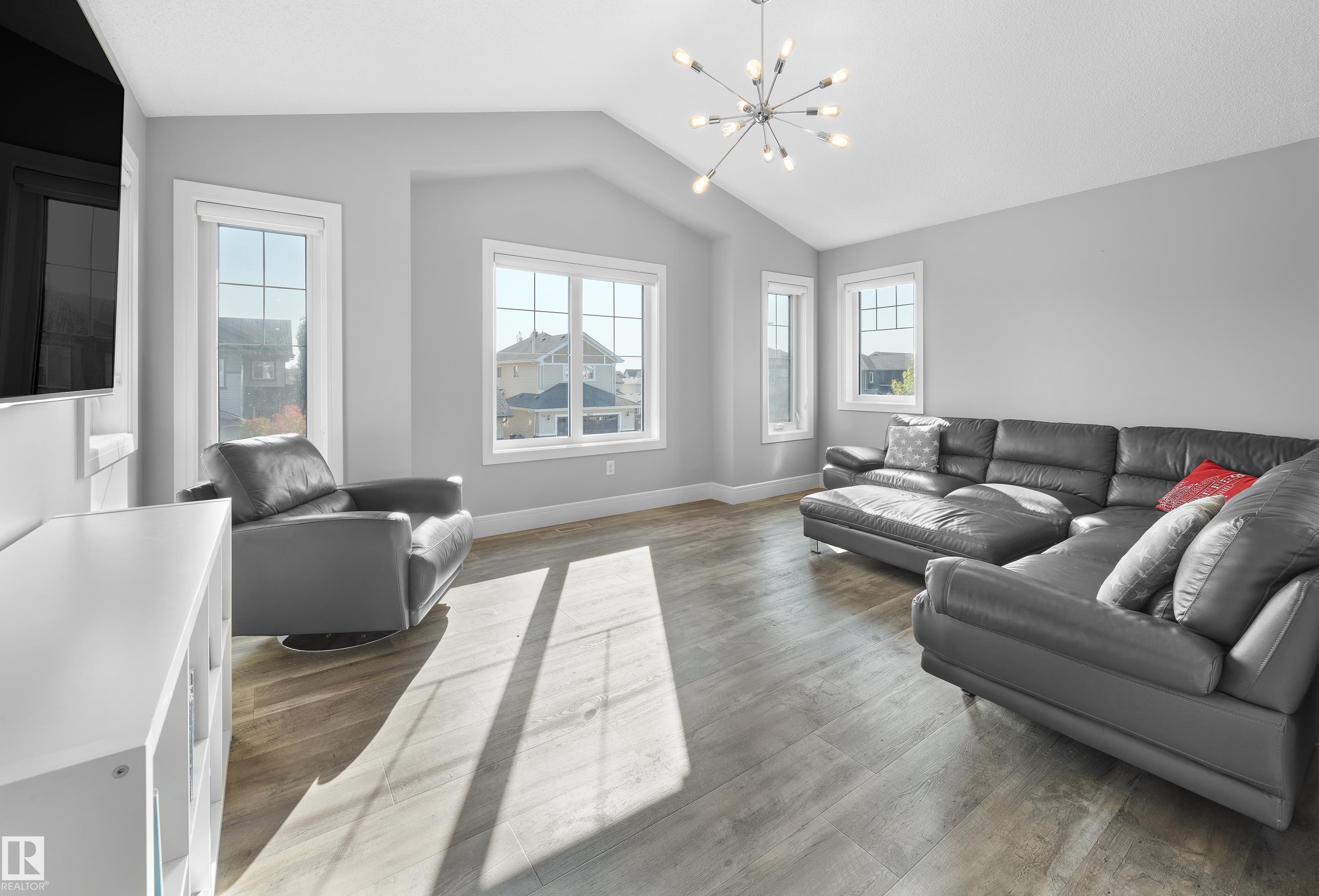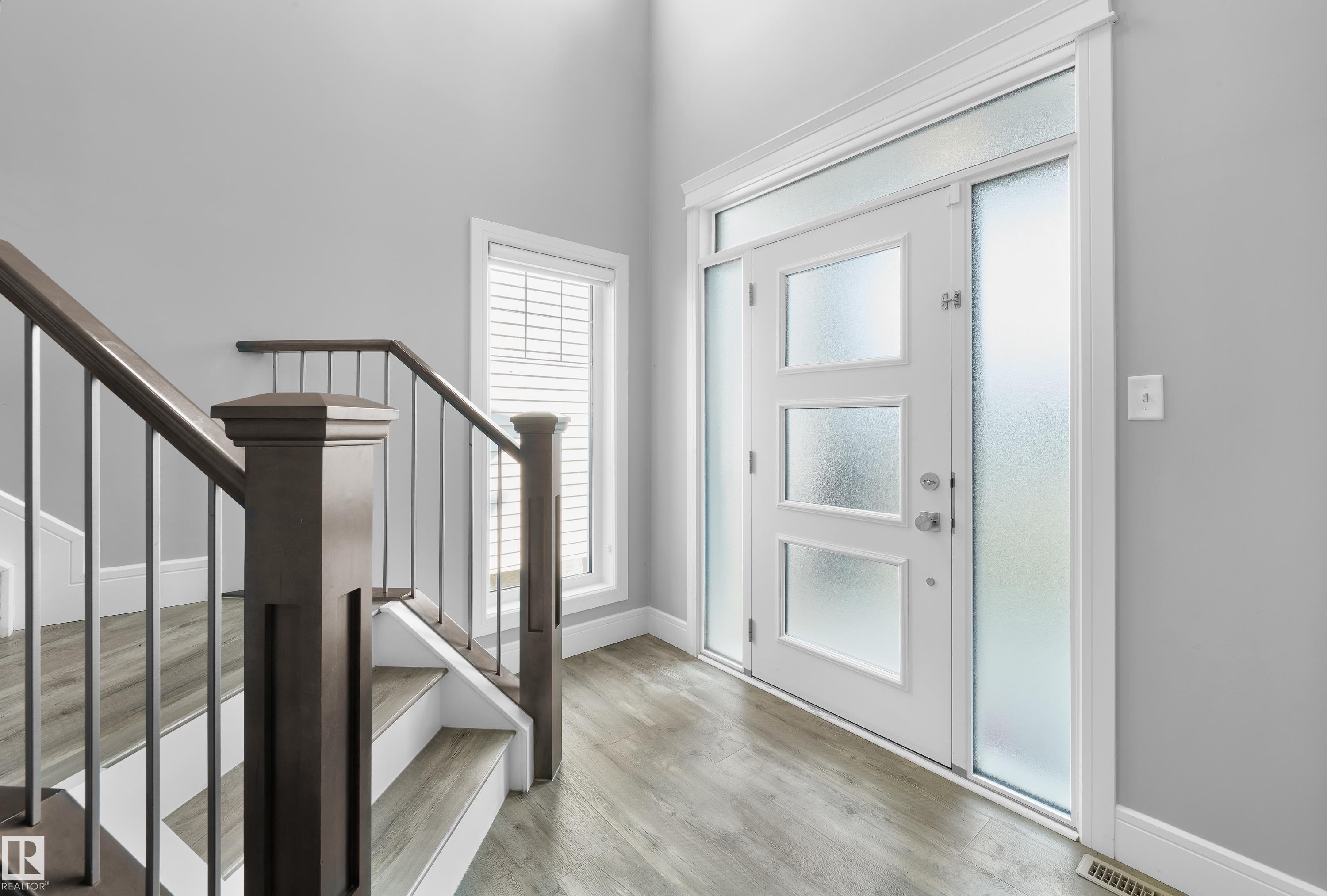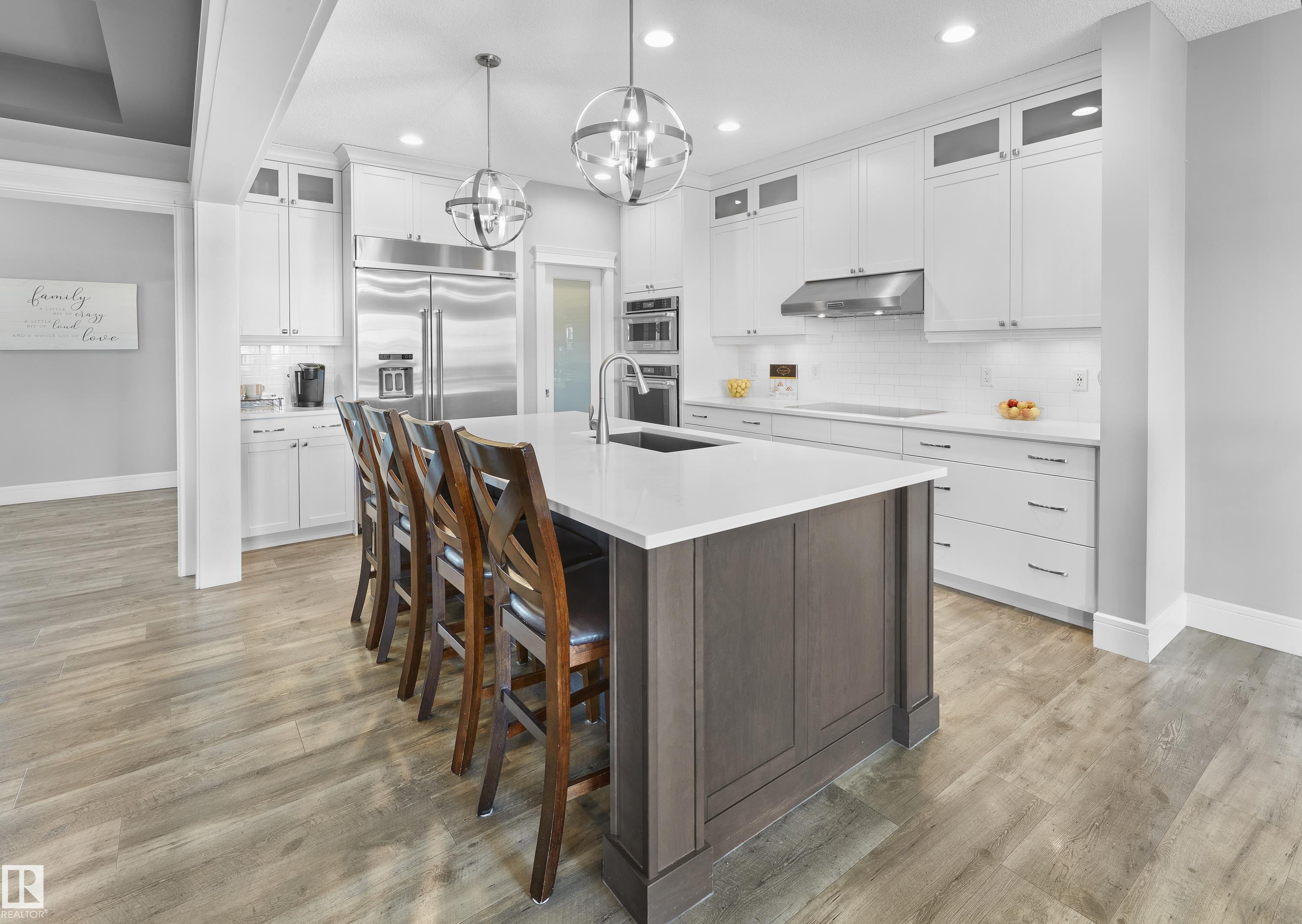 This is a must see property! Tranquil water backdrop from the partially covered upper deck and direct access to the walking path, this Secord residence is a rare blend of beauty and function. The owners reimagined the main floor to feature a custom mudroom and a walk-through pantry. Both are must-see highlights of the home. The chef's kitchen inspires connection with its induction cooktop, built-in oven, warming drawer, generous island, and elegant finishes. Tray ceilings crown the living room, anchored by a gas fireplace, while upstairs the primary suite is a serene retreat with a freestanding soaker tub, double shower, and designer walk-in closet. With 3+1 bedrooms and 3.5 baths, there's room for all. A finished walkout basement extends to a covered backyard patio, lush landscaping with irrigation, and a children's play centre. Central air, a double garage, and thoughtful design complete this light-filled, custom property. An immaculate home that must be seen to be fully appreciated.