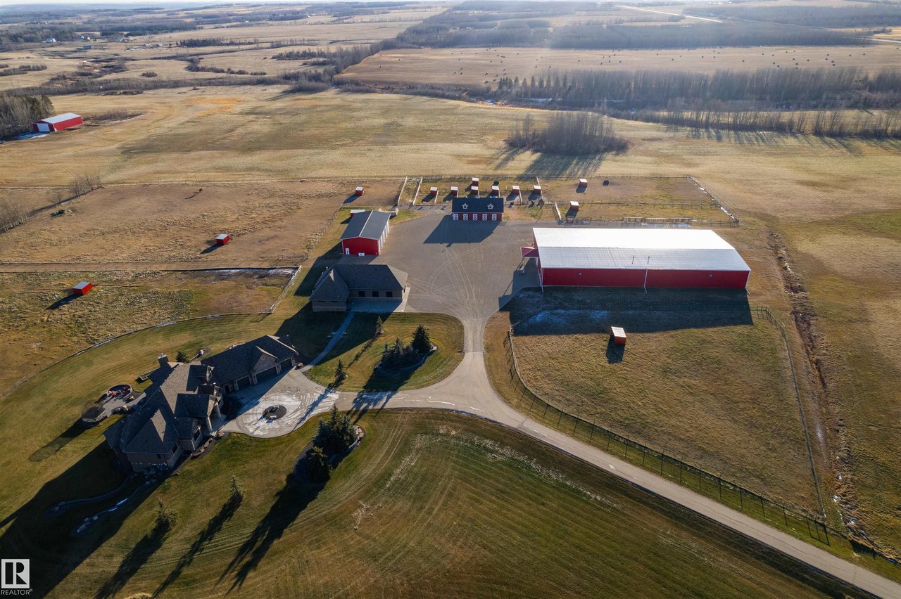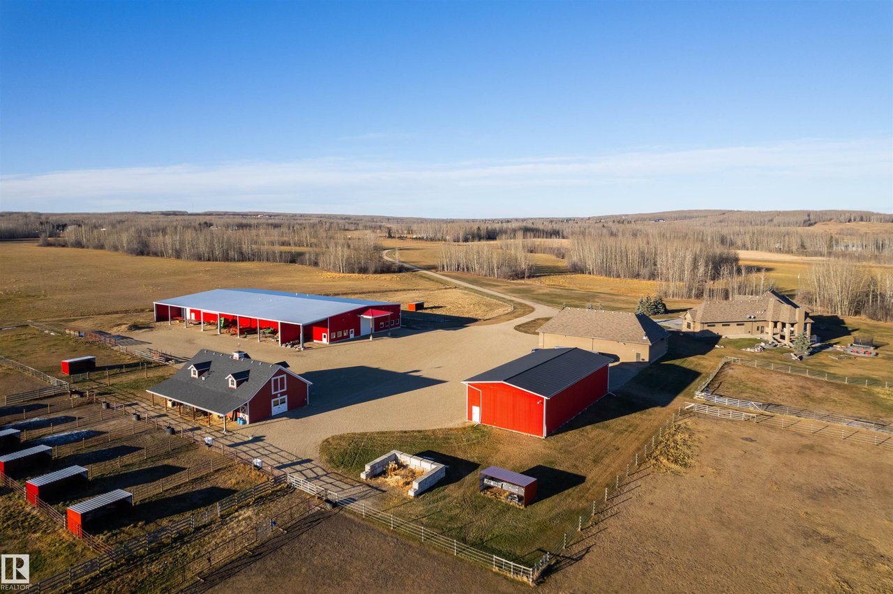 Escape to luxury living on 127 acres of equestrian heaven! This remarkable 4-bedroom 4 full and 2 half bathroom home features exceptional details such as in-floor heating, energy-efficient wood-framed windows, and a spacious 4-car garage complete with a convenient dog wash area. The gourmet kitchen boasts top-of-the-line appliances, stunning granite countertops, and a stylish wet bar for entertaining guests. Retreat to the primary suite, which offers a luxurious 5-piece ensuite and a generous walk-in closet. This property is not just a home; it's an equestrian estate that is all set to go! With a well-equipped barn, a versatile riding arena, 10 well-maintained paddocks, and essential amenities like a machine shop. It's a horse lover's dream come true. The value of this estate is unparalleled, as finding a comparable property at this price would be nearly impossible. Don't let this incredible opportunity slip away. Make your dream of luxury living equestrian paradise a reality!